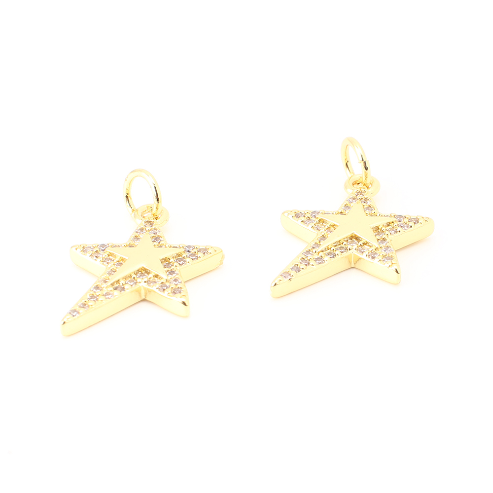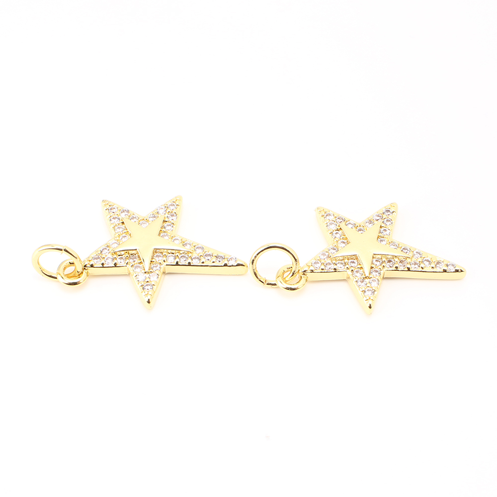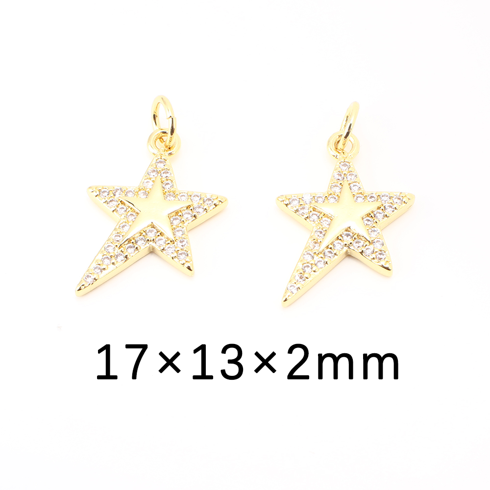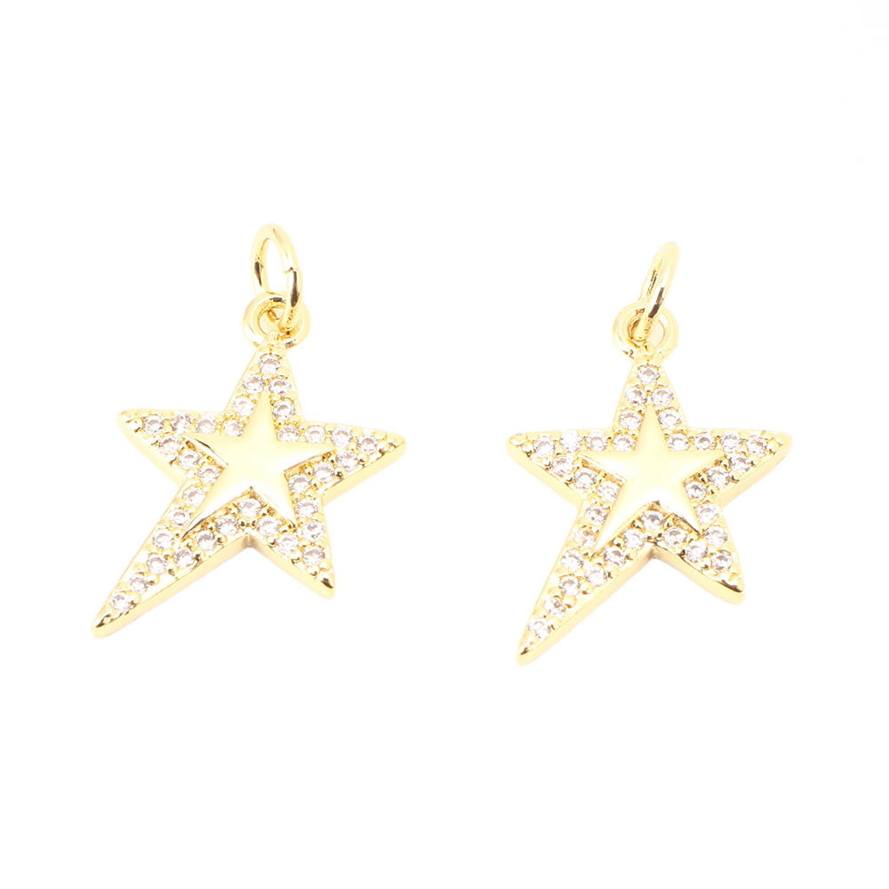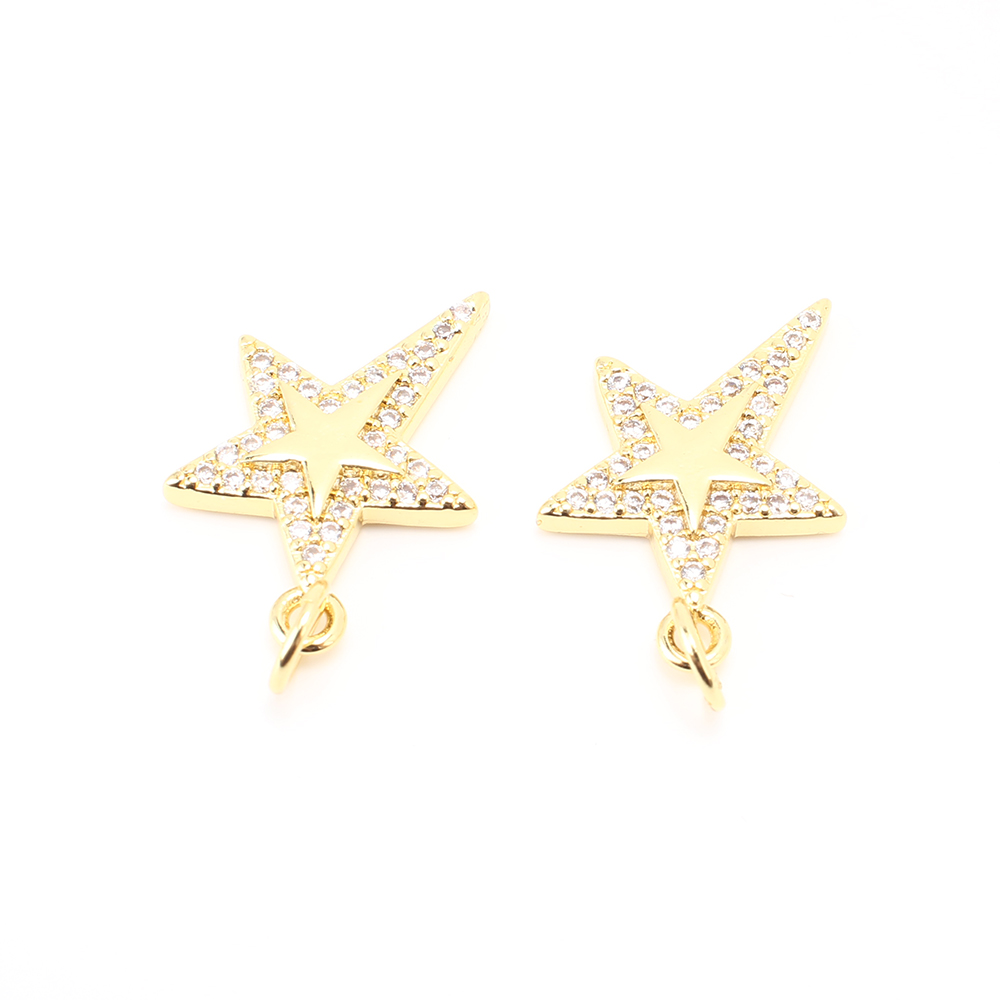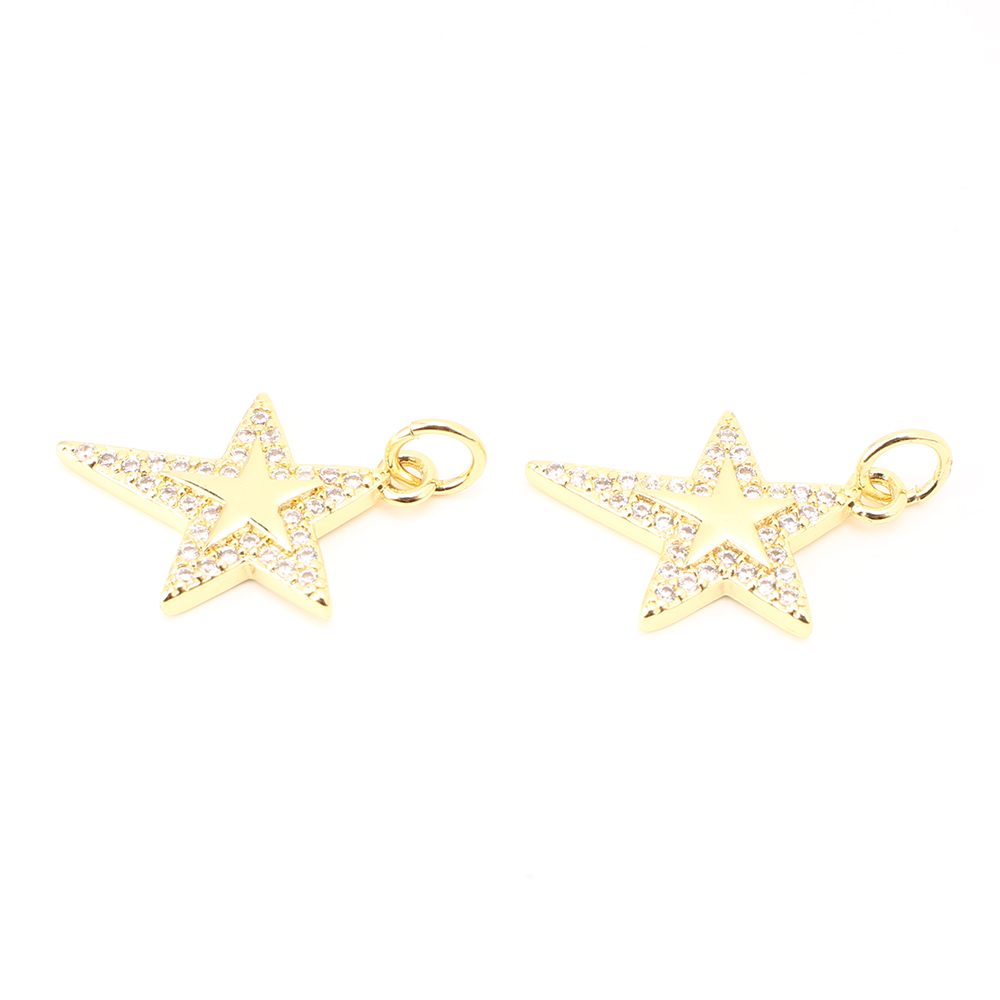 Cubique Pendentif en laiton zircon pavent, étoile, DIY & pavé de micro zircon, doré, 17x13x2mm, Vendu par PC