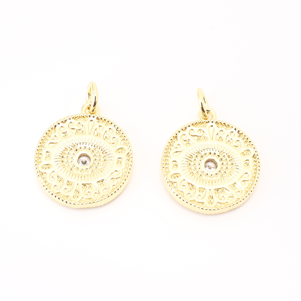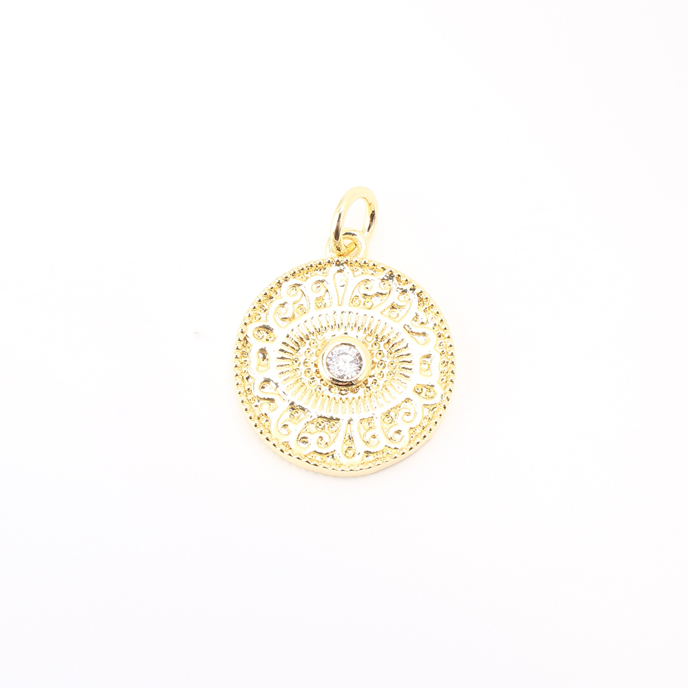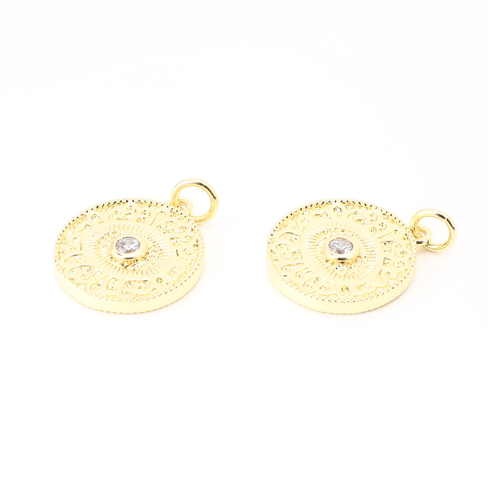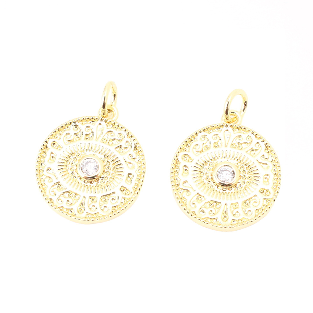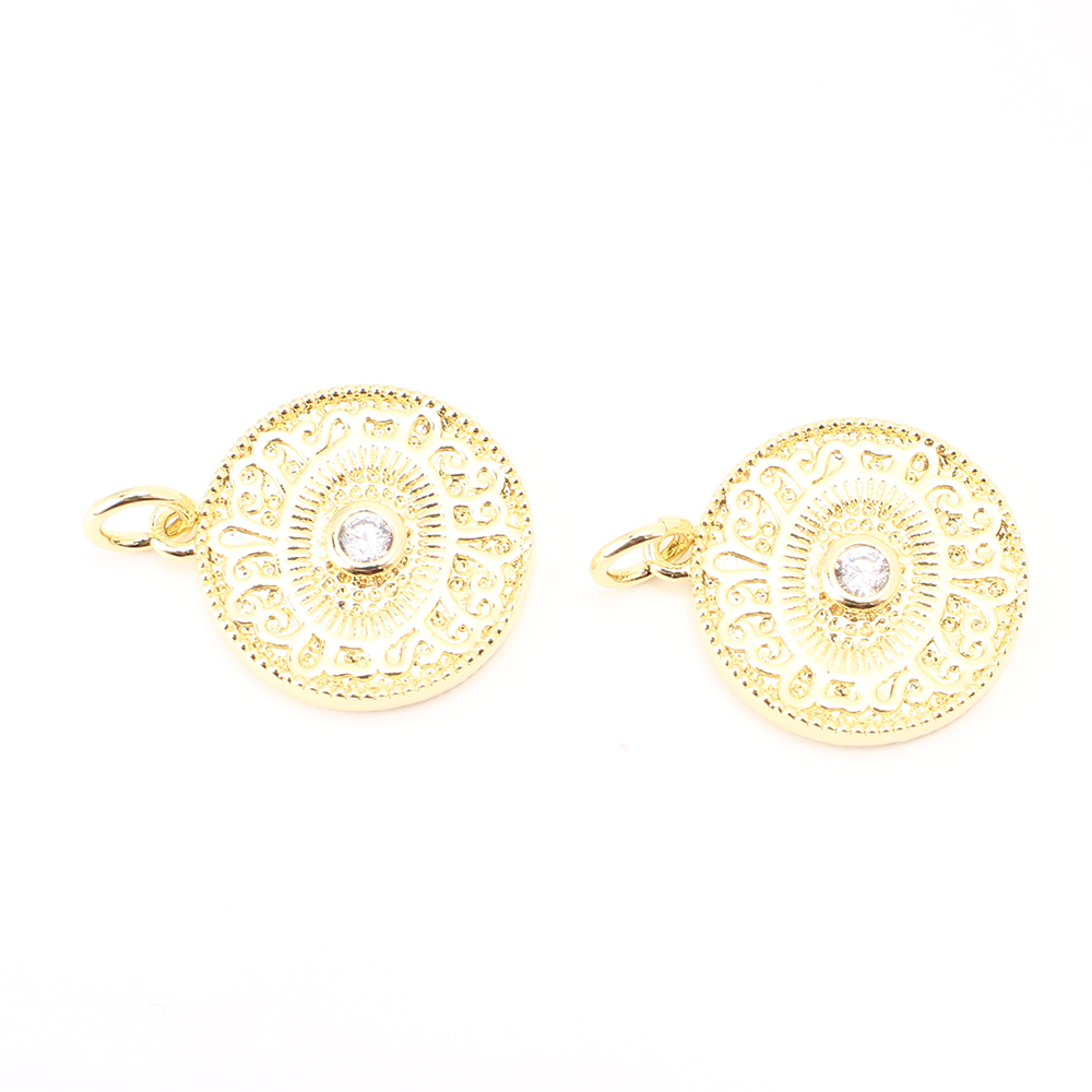 Cubique Pendentif en laiton zircon pavent, Rond, DIY & pavé de micro zircon, doré, 17x15x2mm, Vendu par PC
