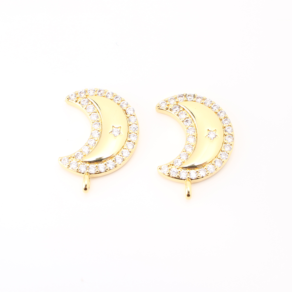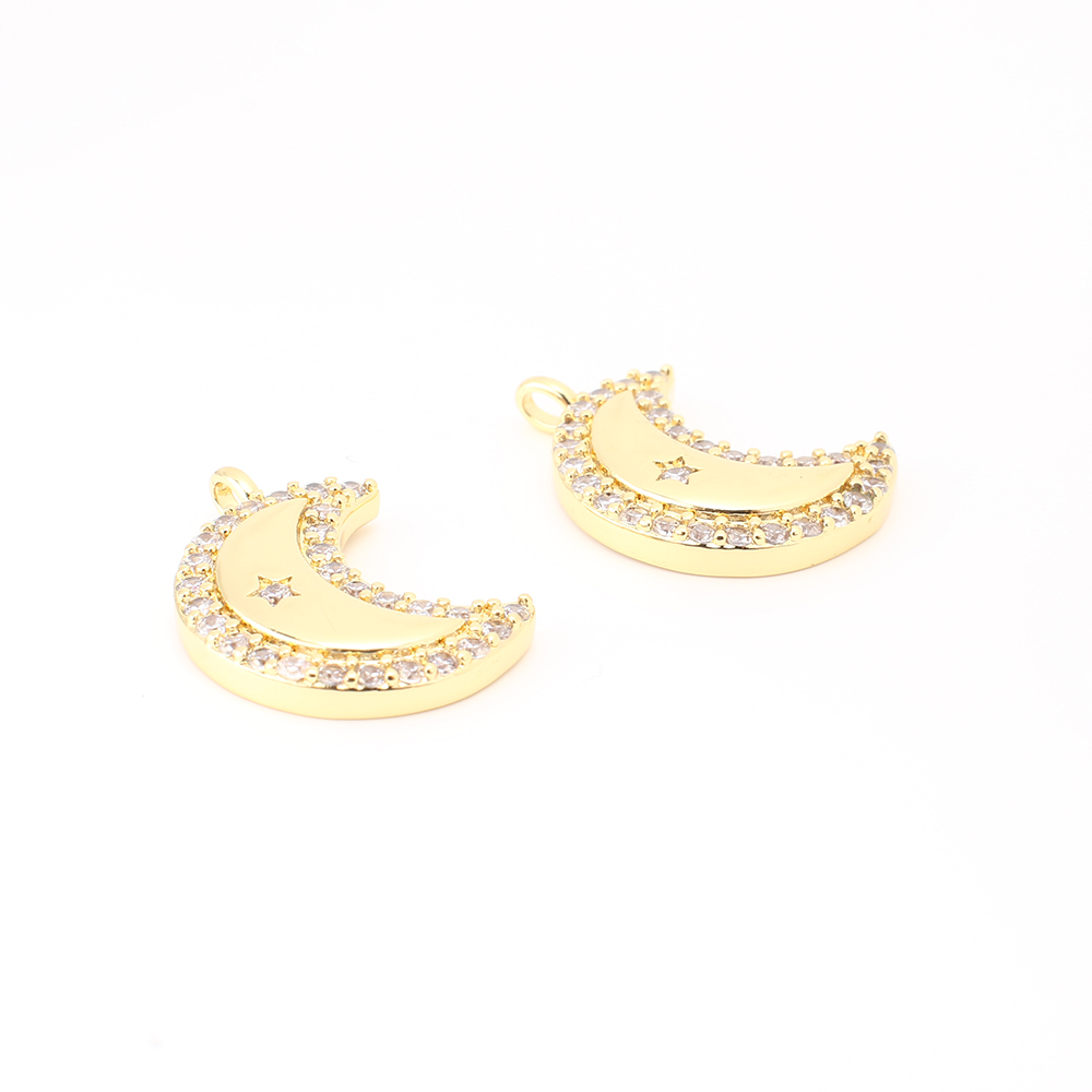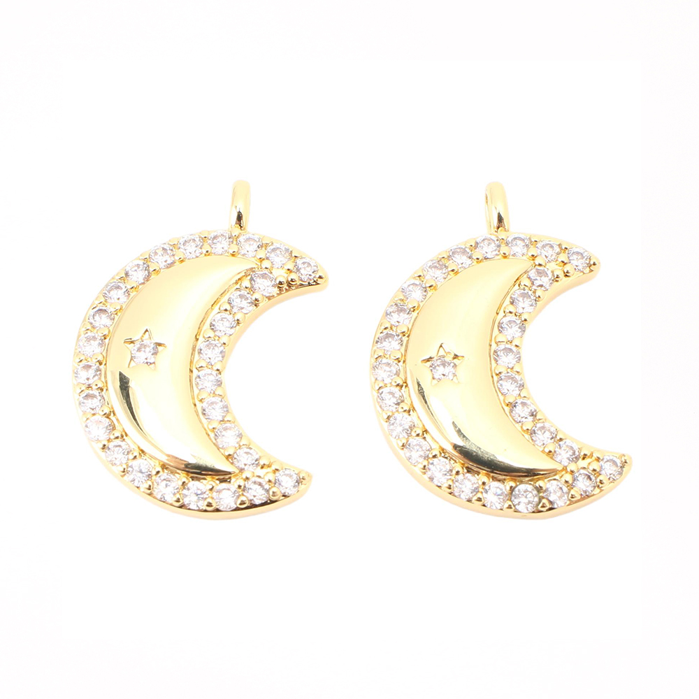 Cubique Pendentif en laiton zircon pavent, lune, DIY & pavé de micro zircon, doré, 20x14x3mm, Vendu par PC
