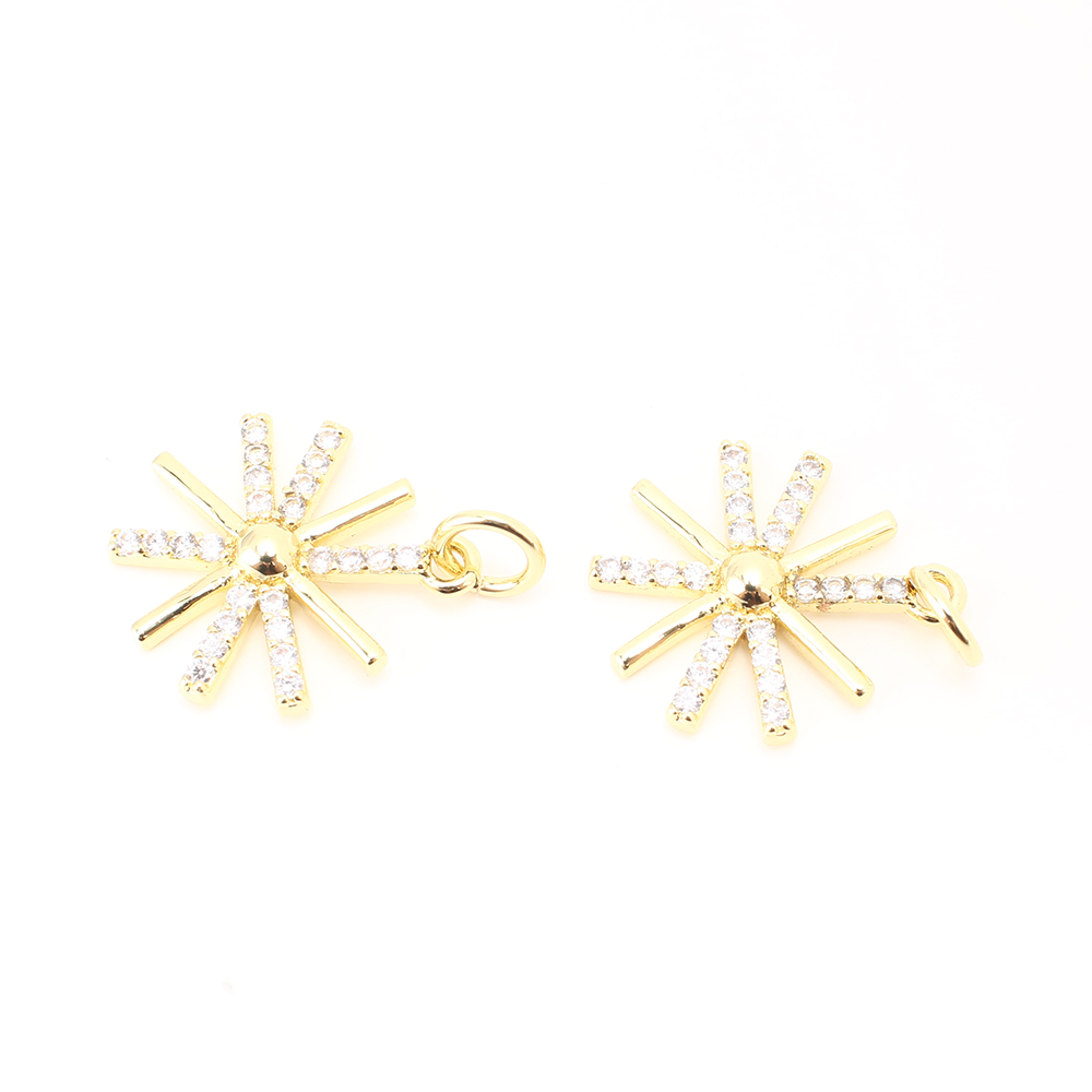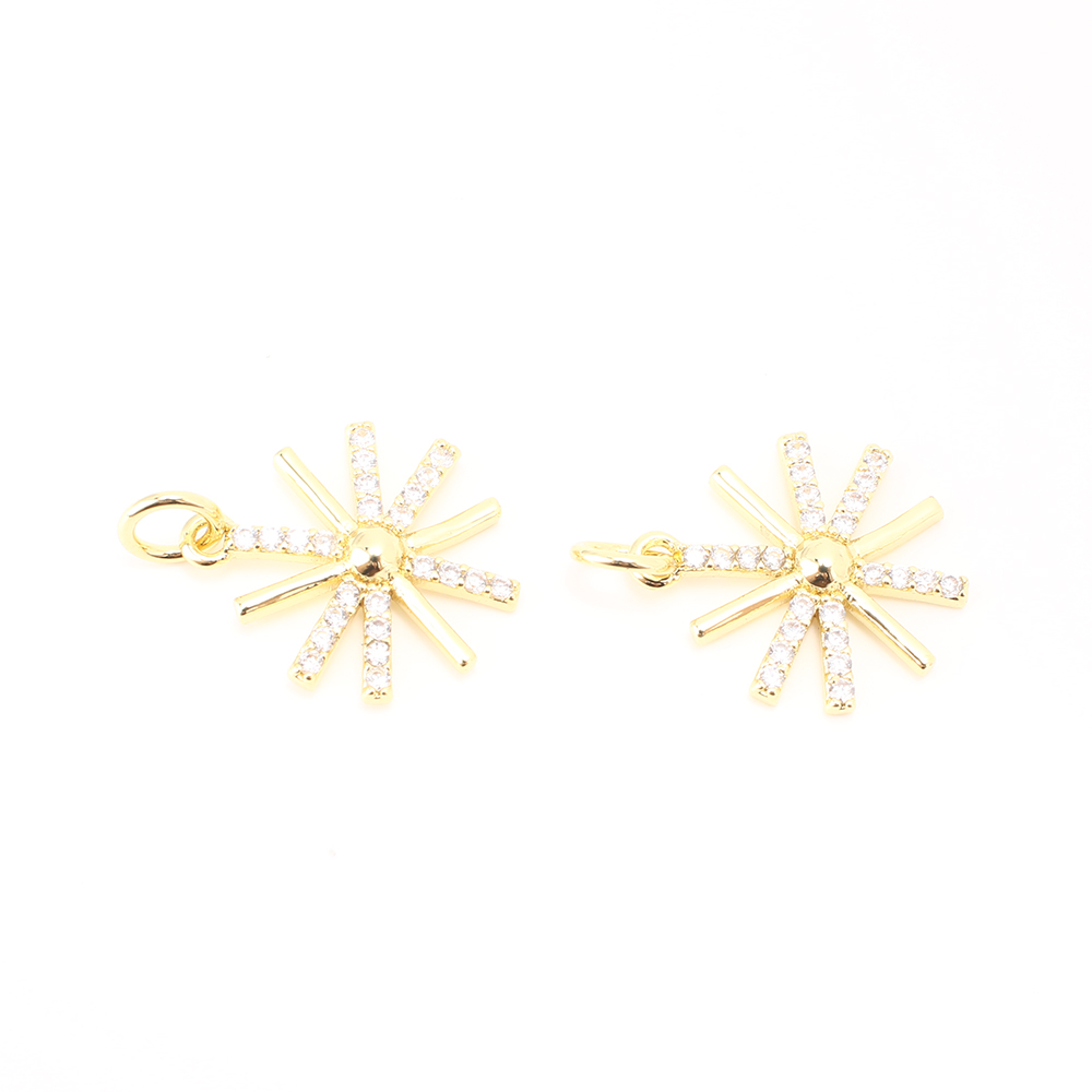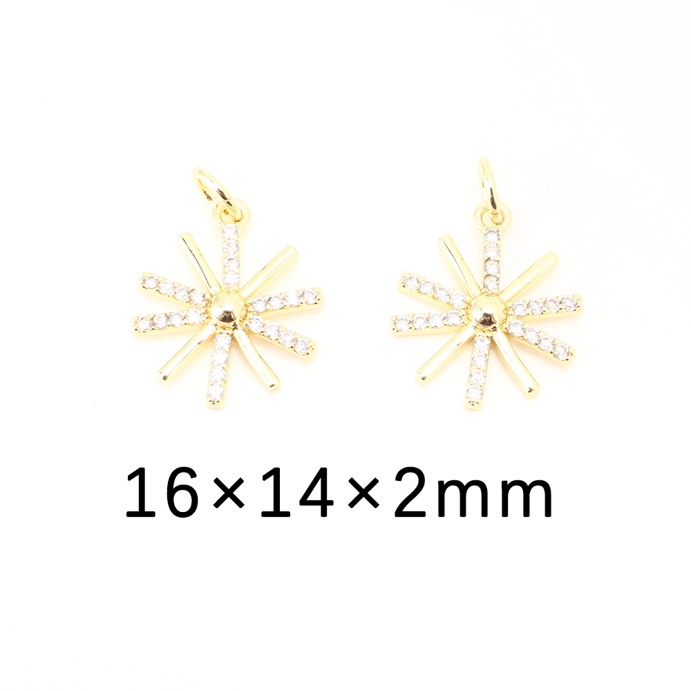 Cubique Pendentif en laiton zircon pavent, fleur, DIY & pavé de micro zircon, doré, 16x14x2mm, Vendu par PC