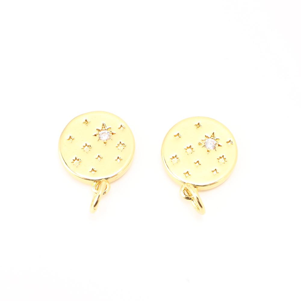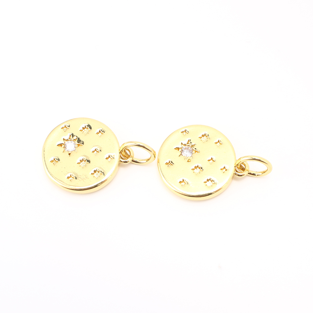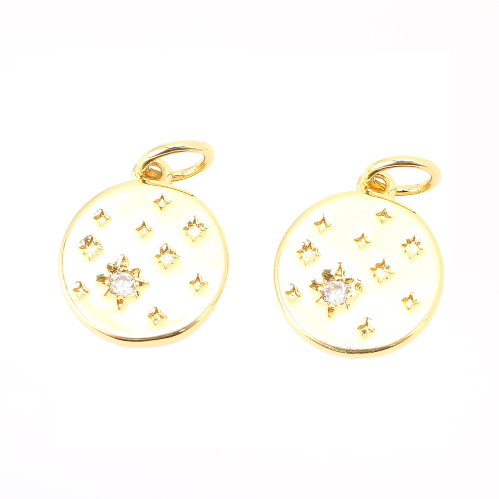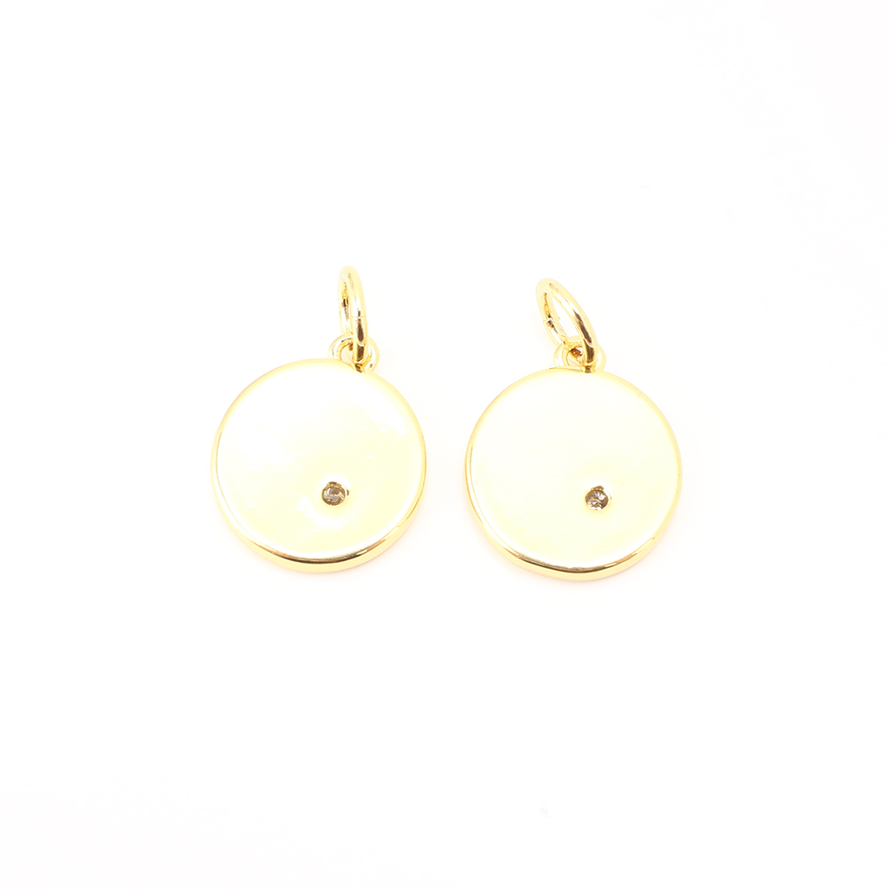 Cubique Pendentif en laiton zircon pavent, Rond, DIY & pavé de micro zircon, doré, 12.50x11x1.50mm, Vendu par PC