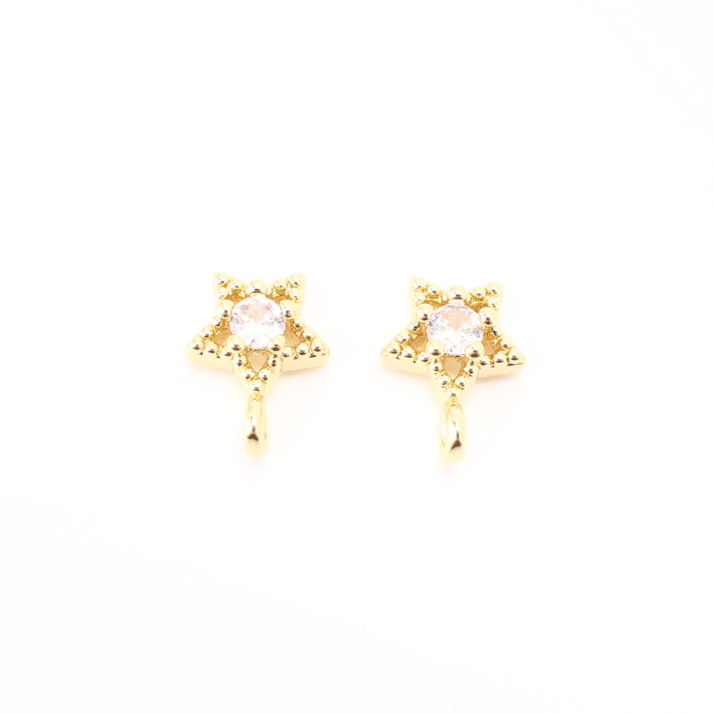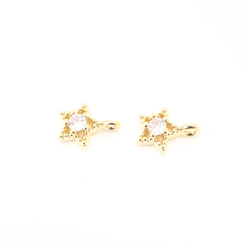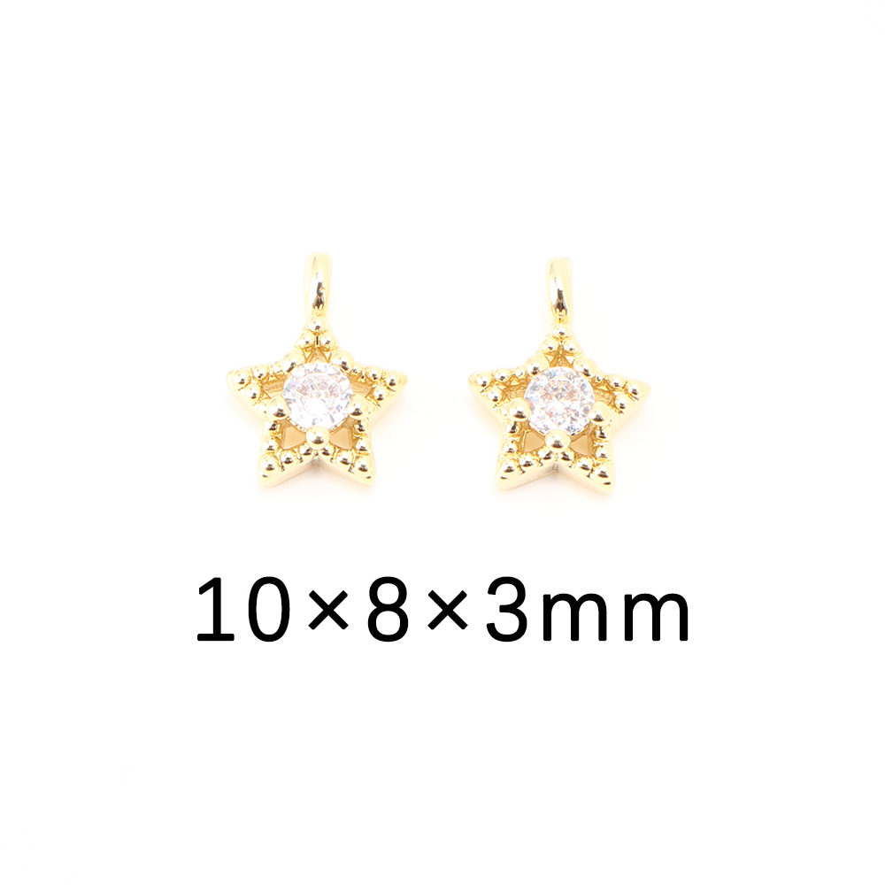 Cubique Pendentif en laiton zircon pavent, étoile, DIY & pavé de micro zircon & creux, doré, 10x8x3mm, Vendu par PC