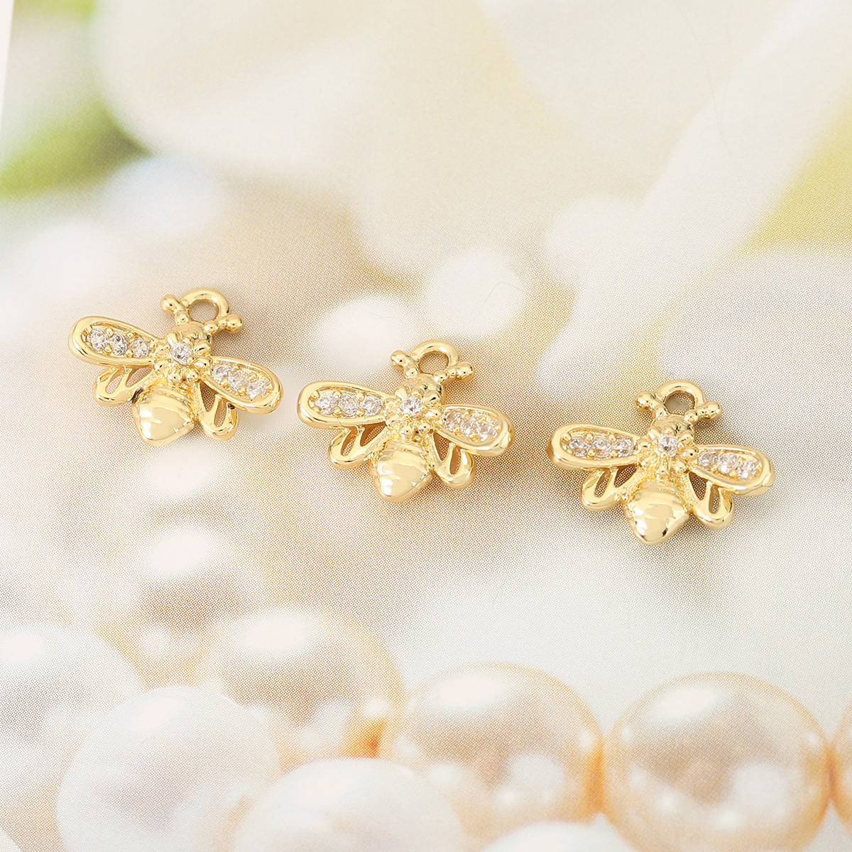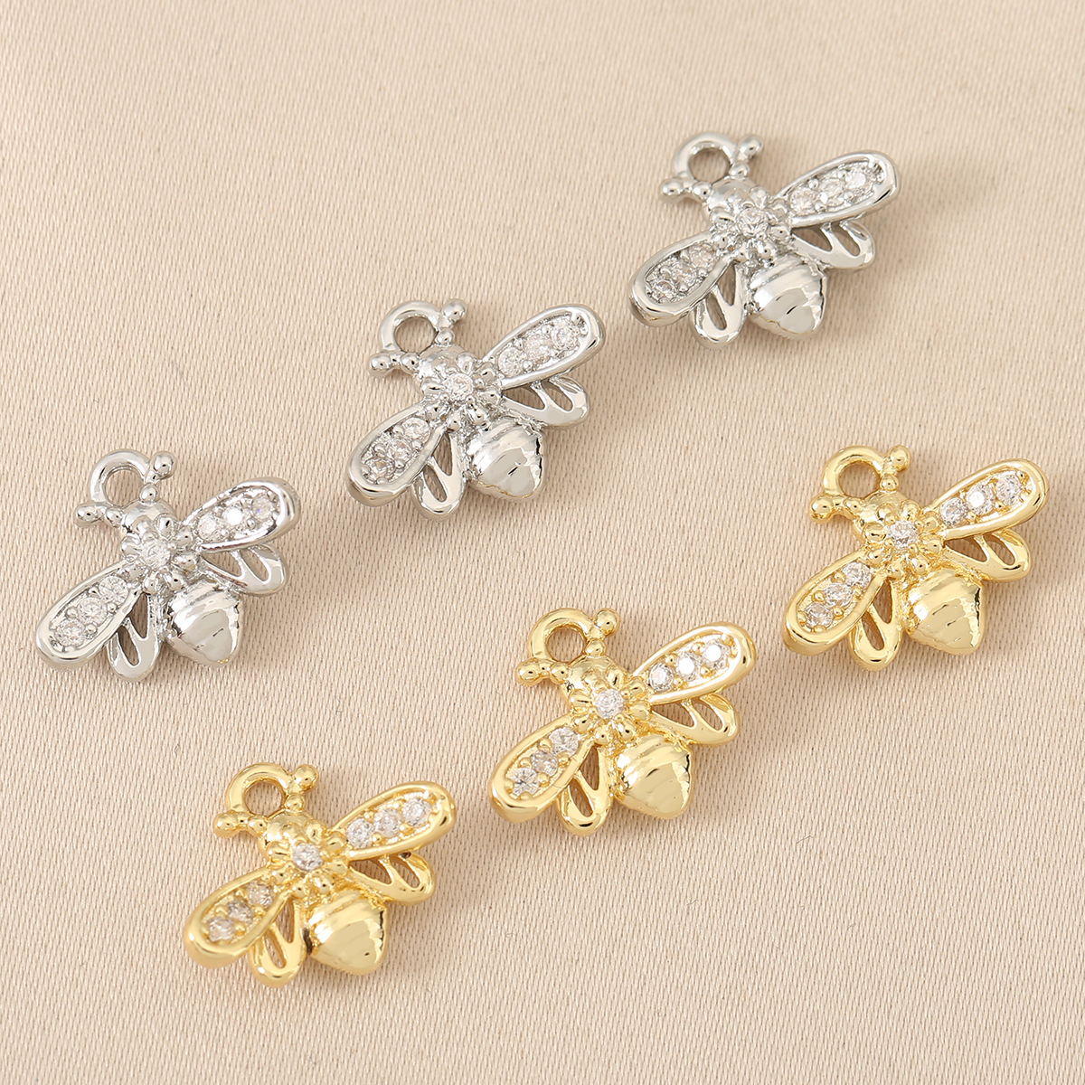 Cubique Pendentif en laiton zircon pavent, abeille, Placage, DIY & pavé de micro zircon, plus de couleurs à choisir, protéger l'environnement, sans nickel, plomb et cadmium, Vendu par sac