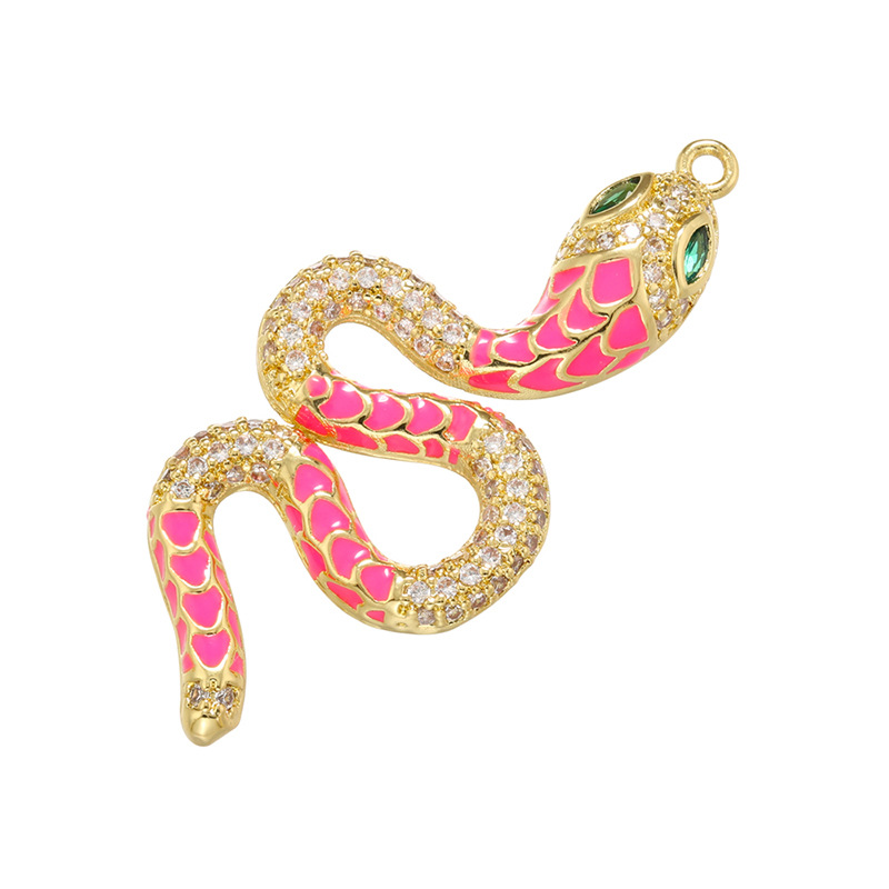 Cubique Pendentif en laiton zircon pavent, serpent, Plaqué or 18K, DIY & pavé de micro zircon & émail, plus de couleurs à choisir, Vendu par PC