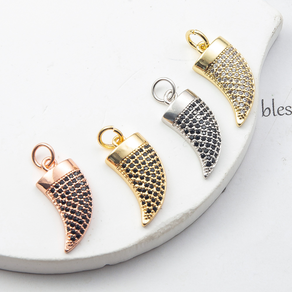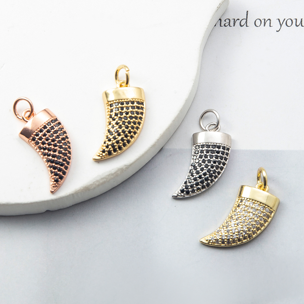 Cubique Pendentif en laiton zircon pavent, Corne, Placage, DIY & pavé de micro zircon, plus de couleurs à choisir, protéger l'environnement, sans nickel, plomb et cadmium, 9.60x3.10x49.20mm, Vendu par PC