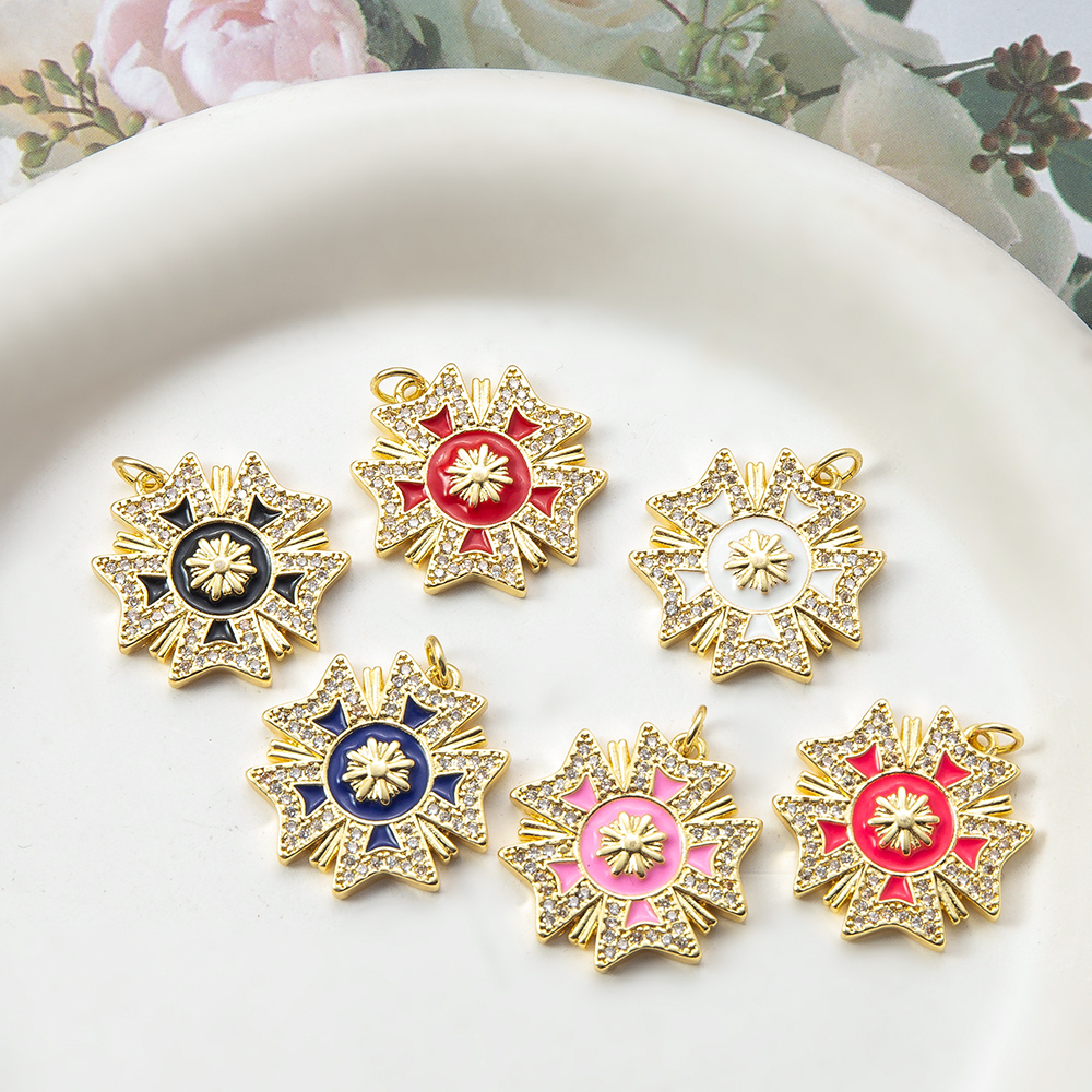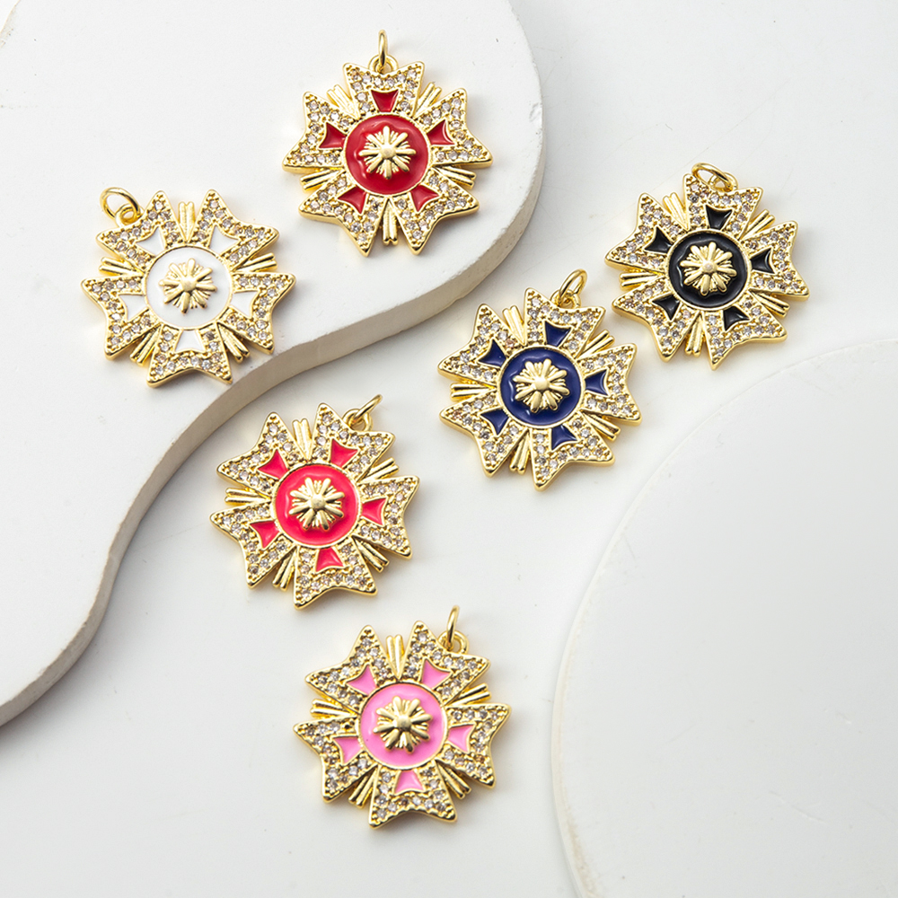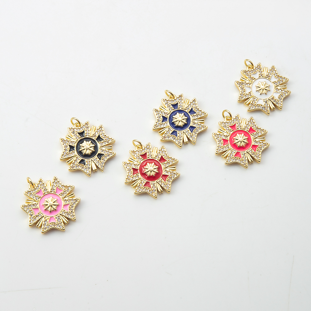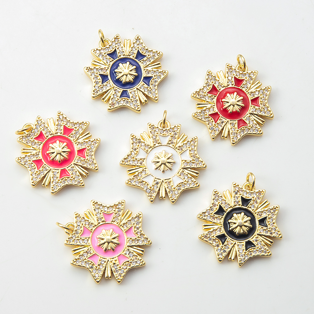 Cubique Pendentif en laiton zircon pavent, fleur, Plaqué or 18K, styles différents pour le choix & pavé de micro zircon & pour femme, Vendu par PC