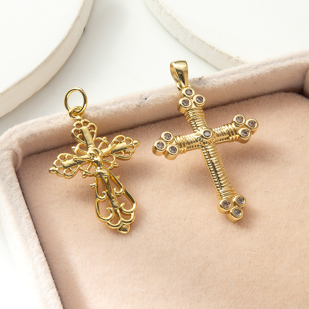 Cubique Pendentif en laiton zircon pavent, croix, Placage, DIY & pavé de micro zircon, plus de couleurs à choisir, protéger l'environnement, sans nickel, plomb et cadmium, 39x25.20x3.60mm, Vendu par PC