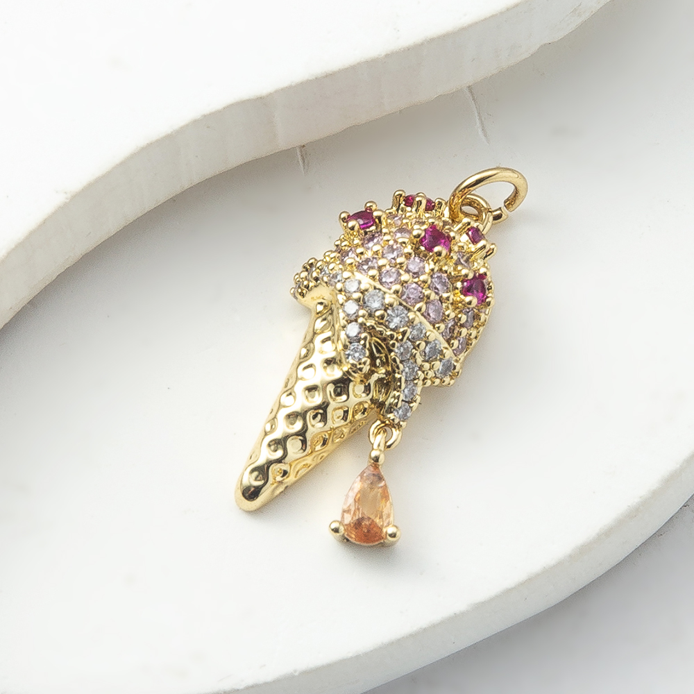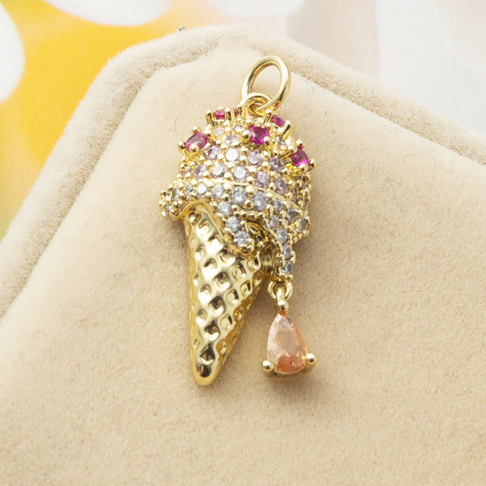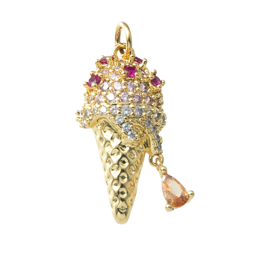 Cubique Pendentif en laiton zircon pavent, crème glacée, Placage, bijoux de mode & pavé de micro zircon, plus de couleurs à choisir, protéger l'environnement, sans nickel, plomb et cadmium, 12x6.35x28.10mm, Vendu par PC