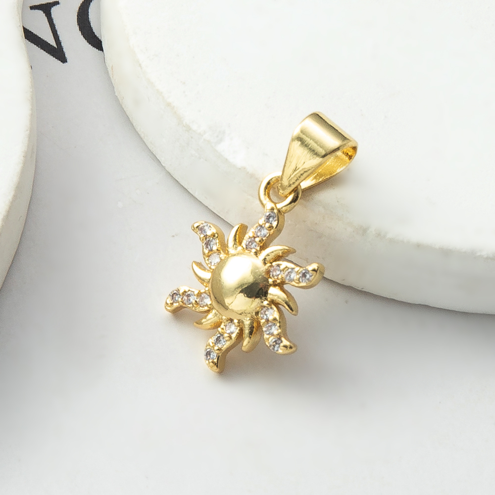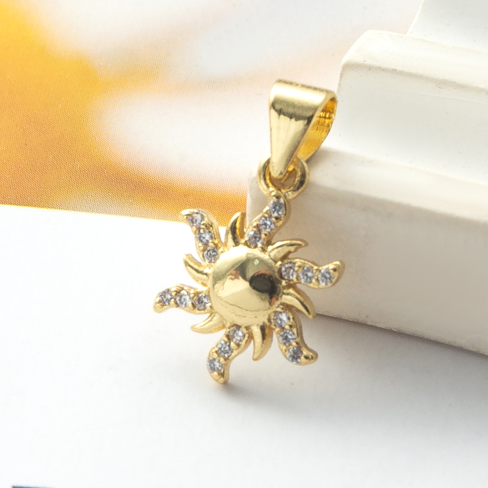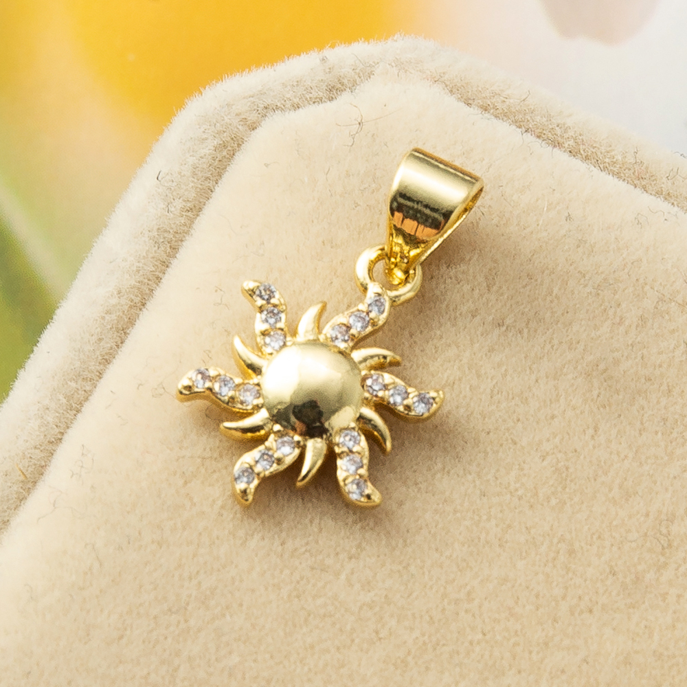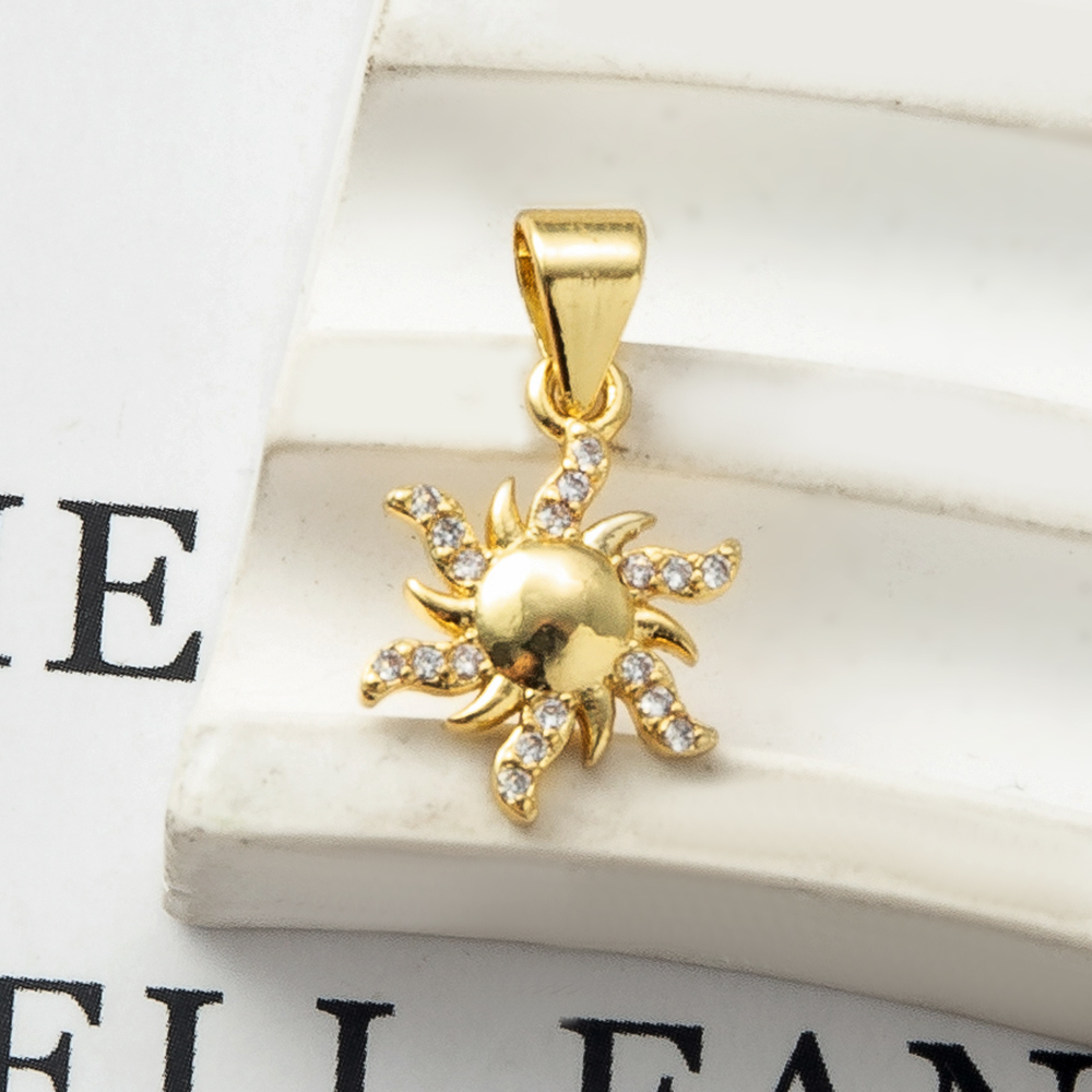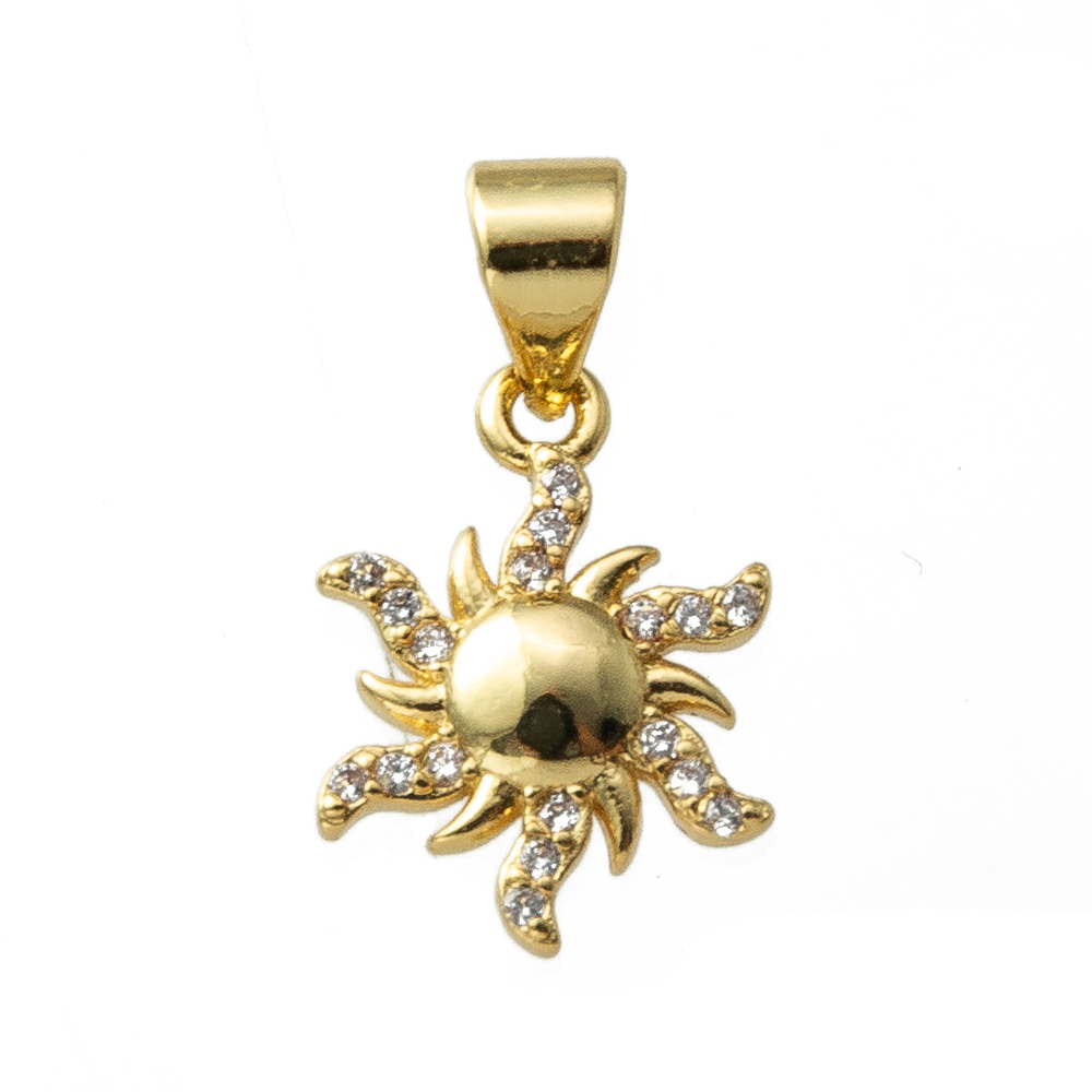 Cubique Pendentif en laiton zircon pavent, soleil, Placage, bijoux de mode & pavé de micro zircon, doré, protéger l'environnement, sans nickel, plomb et cadmium, 10.66x2.25x19mm, Vendu par PC