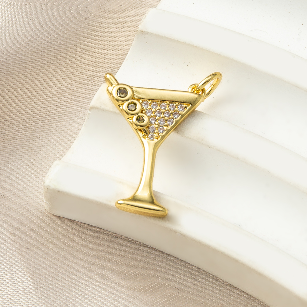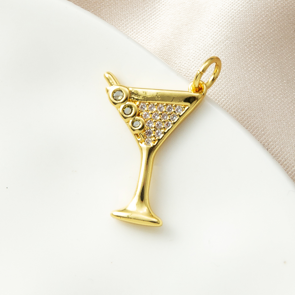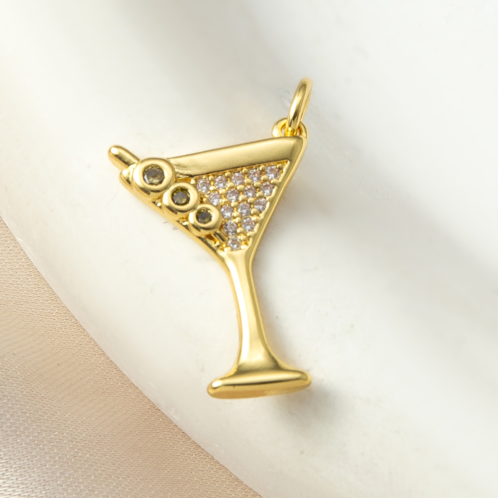Cubique Pendentif en laiton zircon pavent, tasse, Placage, bijoux de mode & pavé de micro zircon, doré, protéger l'environnement, sans nickel, plomb et cadmium, 13.10x2.20x22.20mm, Vendu par PC