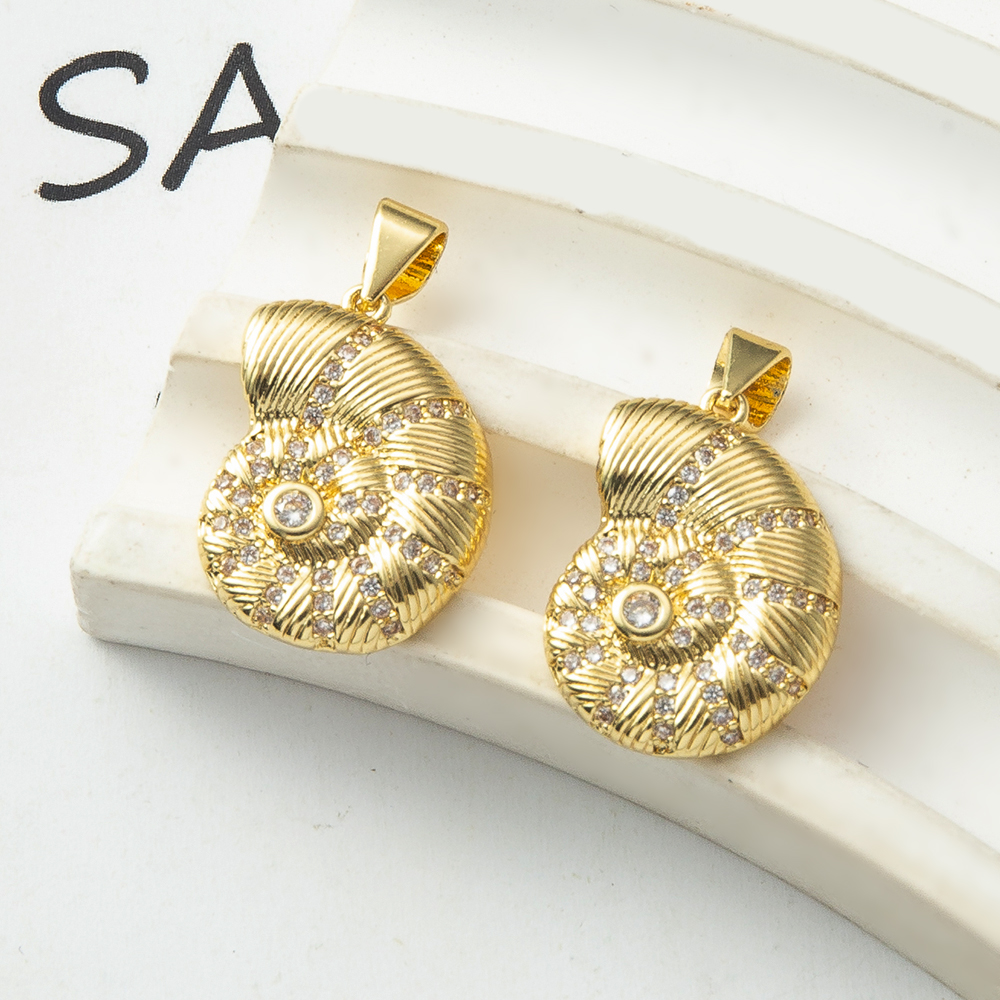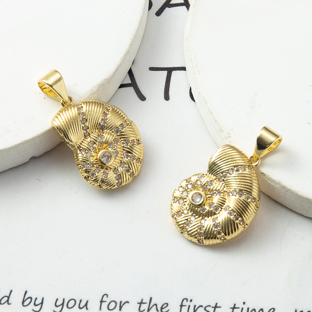 Cubique Pendentif en laiton zircon pavent, conque, Placage, bijoux de mode & pavé de micro zircon, plus de couleurs à choisir, protéger l'environnement, sans nickel, plomb et cadmium, 13.80x3.30x24.20mm, Vendu par PC