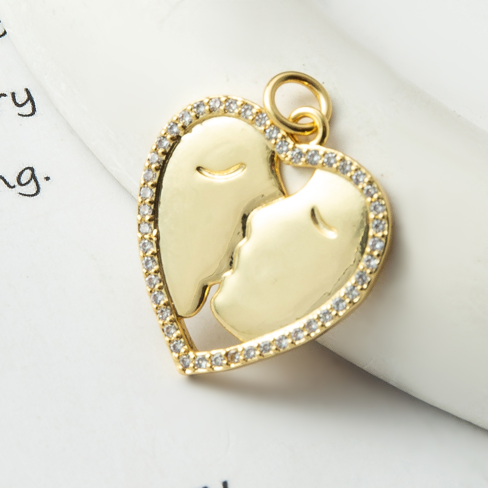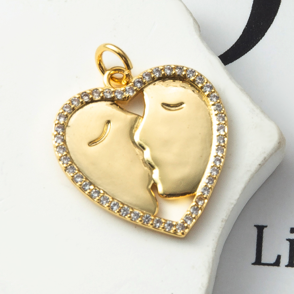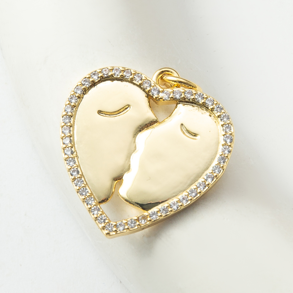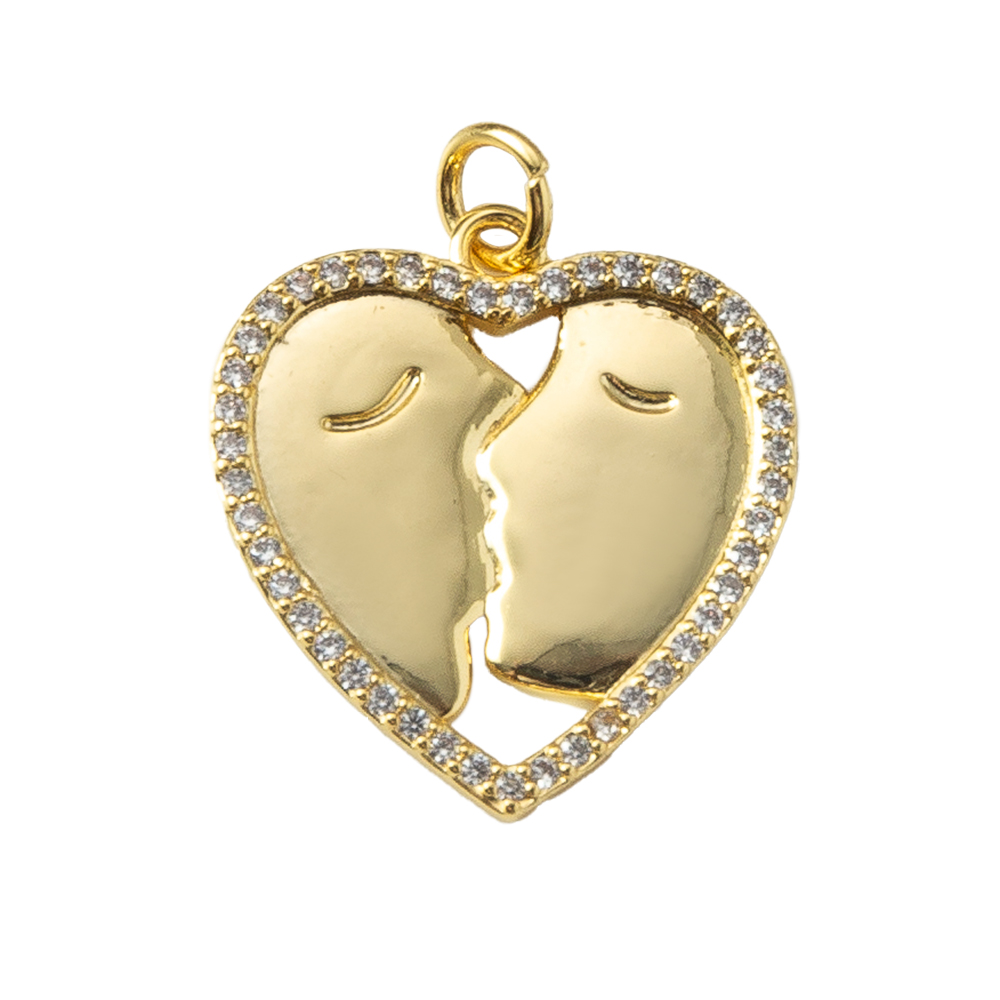 Cubique Pendentif en laiton zircon pavent, coeur, Placage, bijoux de mode & pavé de micro zircon, doré, protéger l'environnement, sans nickel, plomb et cadmium, 19.30x1.70x24.20mm, Vendu par PC