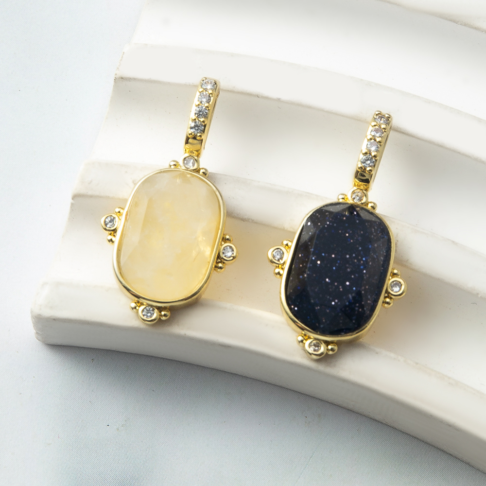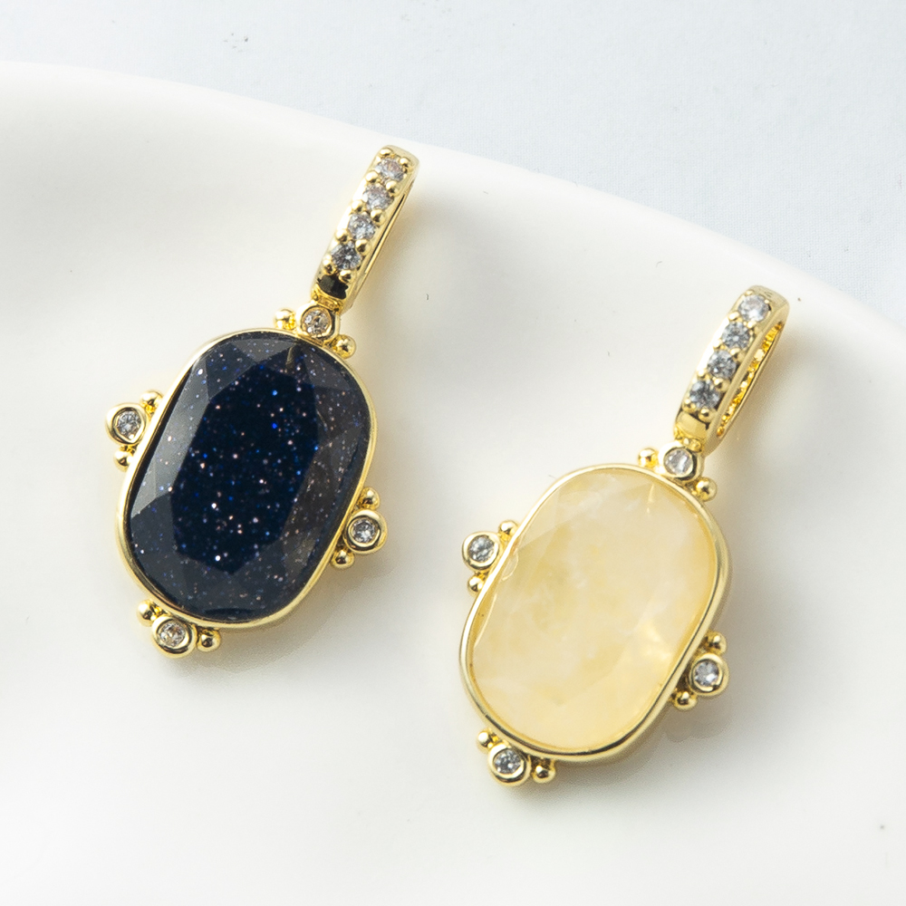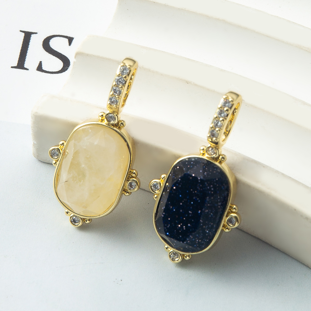 Cubique Pendentif en laiton zircon pavent, avec Grès bleu & perles de citrine, Placage, bijoux de mode & pavé de micro zircon, plus de couleurs à choisir, protéger l'environnement, sans nickel, plomb et cadmium, 13.30x5.10x24.25mm, Vendu par PC