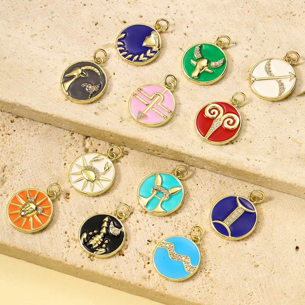 Cubique Pendentif en laiton zircon pavent, Rond, Placage, DIY & pavé de micro zircon & émail, plus de couleurs à choisir, protéger l'environnement, sans nickel, plomb et cadmium, 3PC/sac, Vendu par sac
