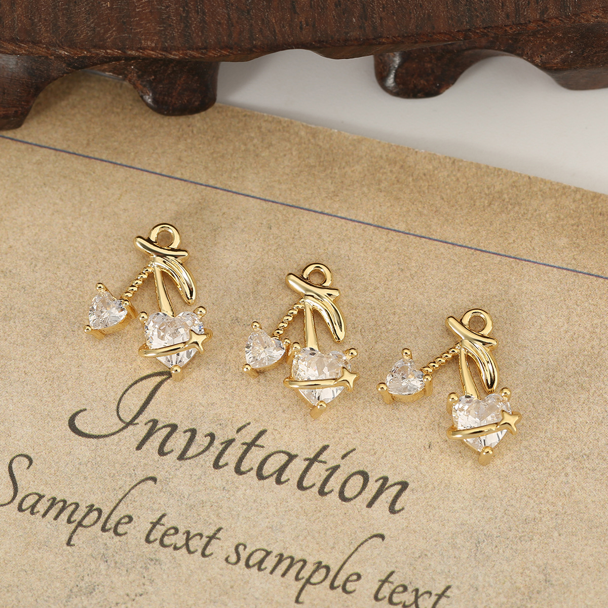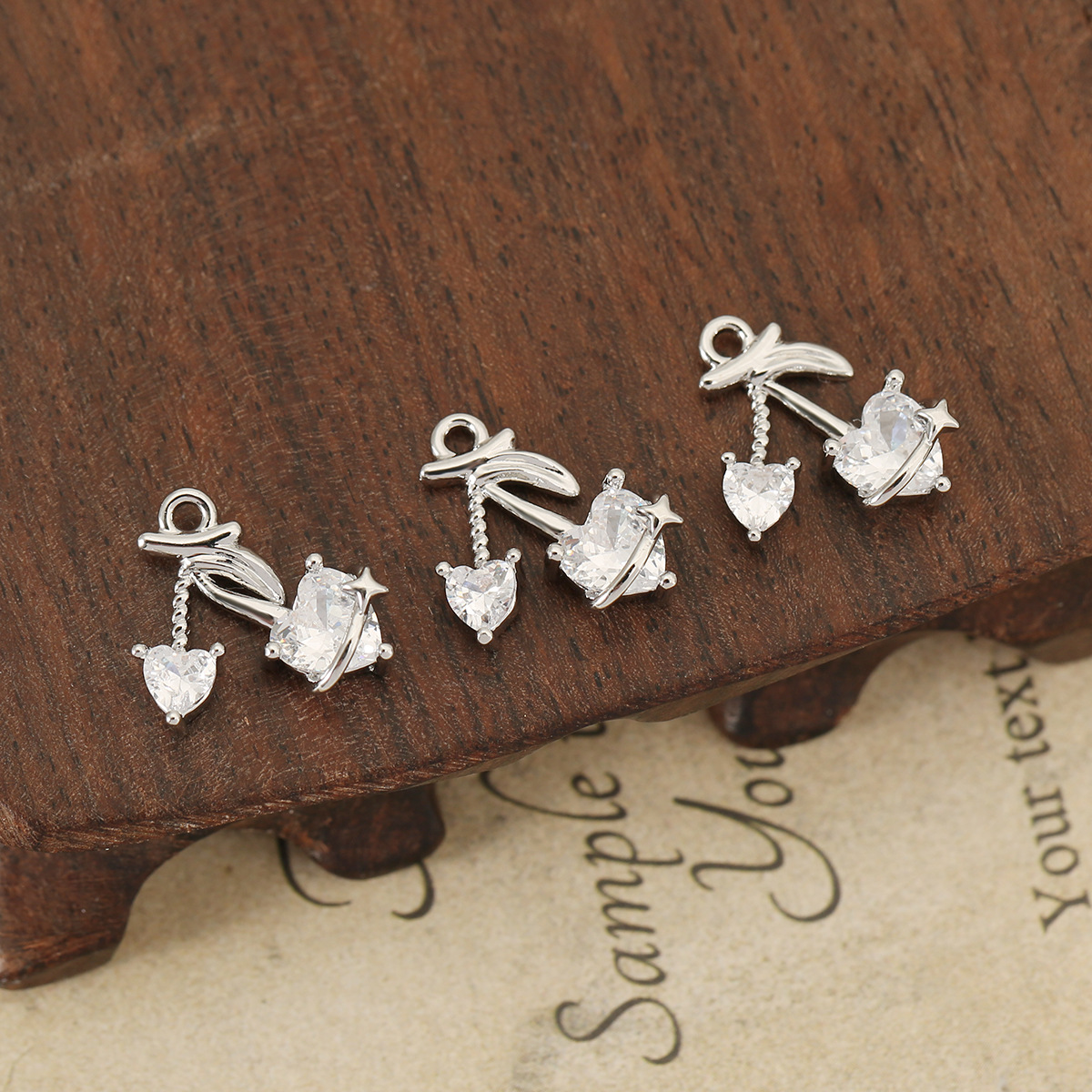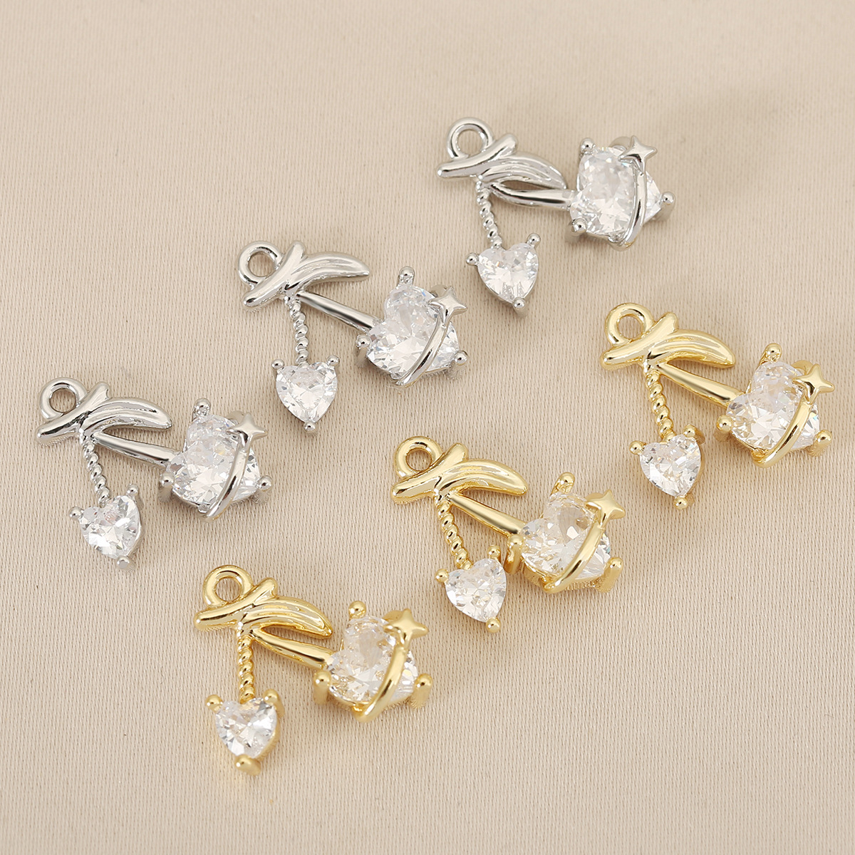 Cubique Pendentif en laiton zircon pavent, cerise, Placage, DIY & pavé de micro zircon, plus de couleurs à choisir, protéger l'environnement, sans nickel, plomb et cadmium, 10PC/sac, Vendu par sac