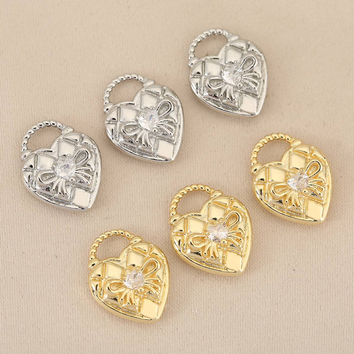 Cubique Pendentif en laiton zircon pavent, coeur, Placage, DIY & pavé de micro zircon, plus de couleurs à choisir, protéger l'environnement, sans nickel, plomb et cadmium, 10PC/sac, Vendu par sac