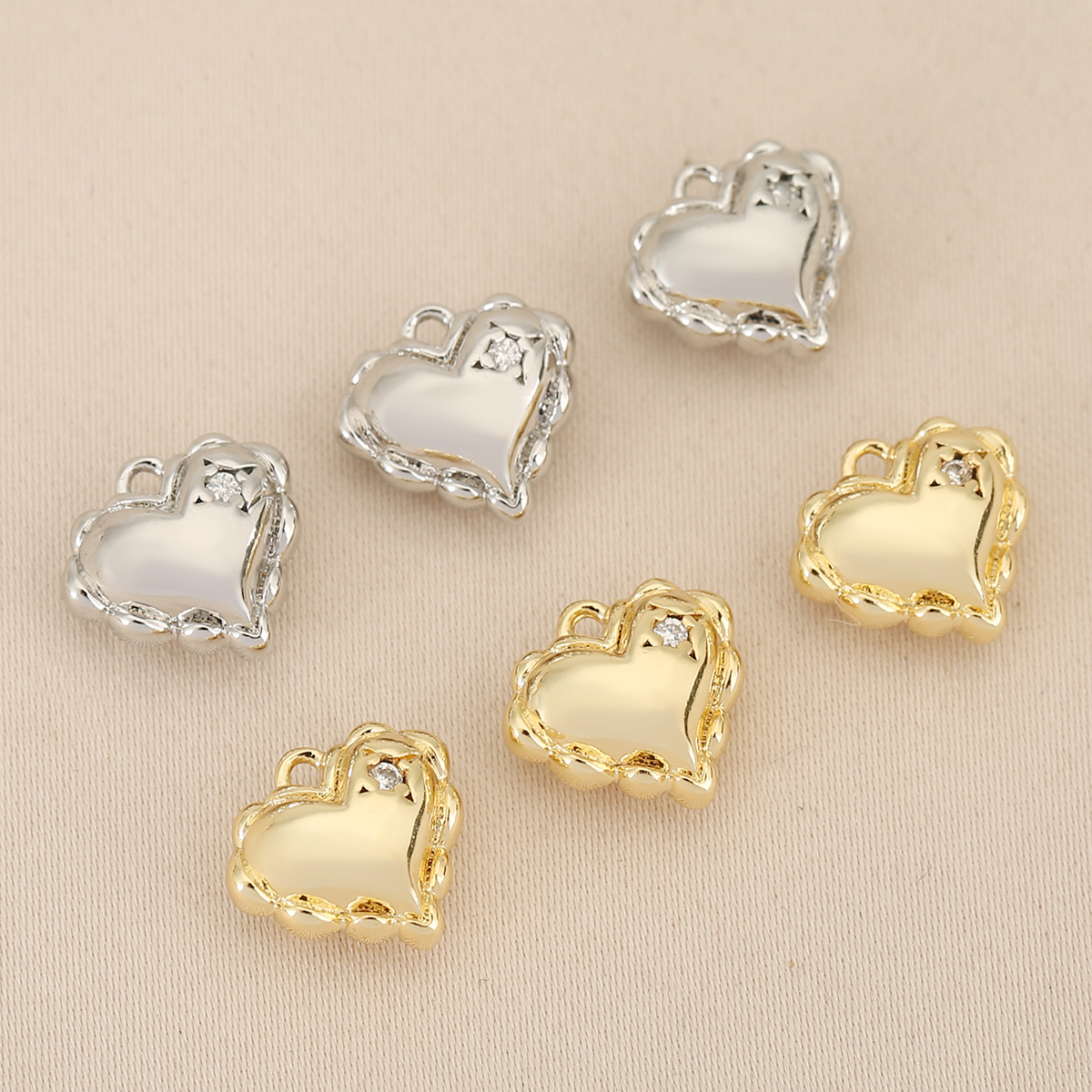 Cubique Pendentif en laiton zircon pavent, coeur, Placage, DIY & pavé de micro zircon, plus de couleurs à choisir, protéger l'environnement, sans nickel, plomb et cadmium, 10PC/sac, Vendu par sac