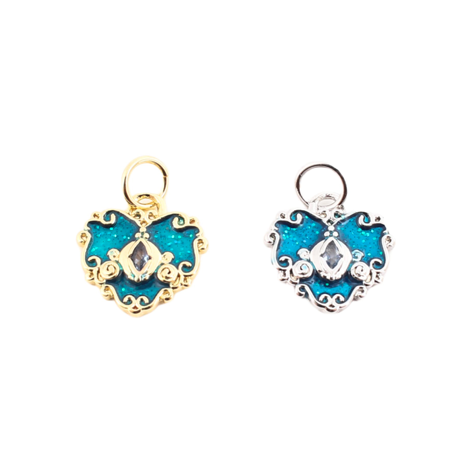 Cubique Pendentif en laiton zircon pavent, coeur, DIY & pavé de micro zircon & émail, plus de couleurs à choisir, 11x12x1.50mm, Vendu par PC