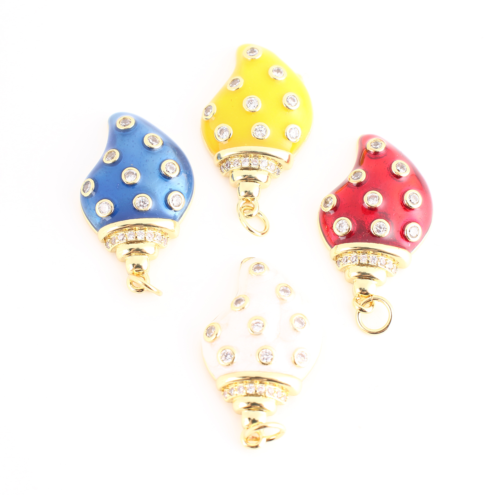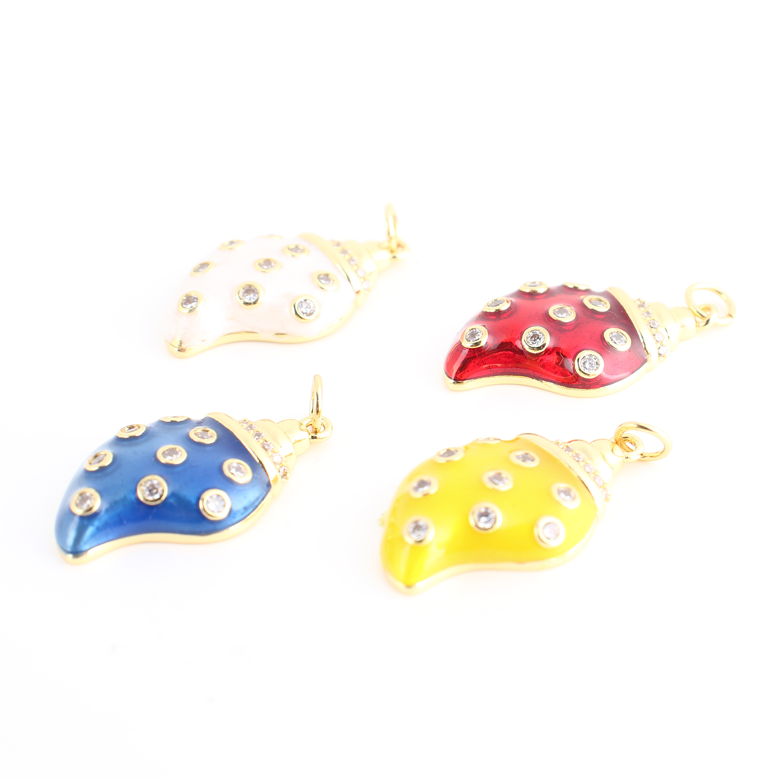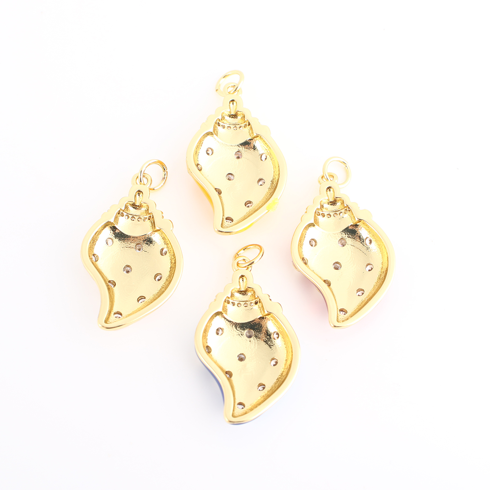 Cubique Pendentif en laiton zircon pavent, conque, Placage de couleur d'or, DIY & pavé de micro zircon & émail, plus de couleurs à choisir, 26x15x5mm, Vendu par PC