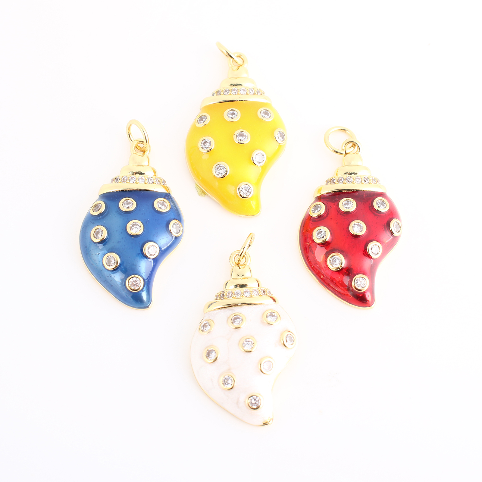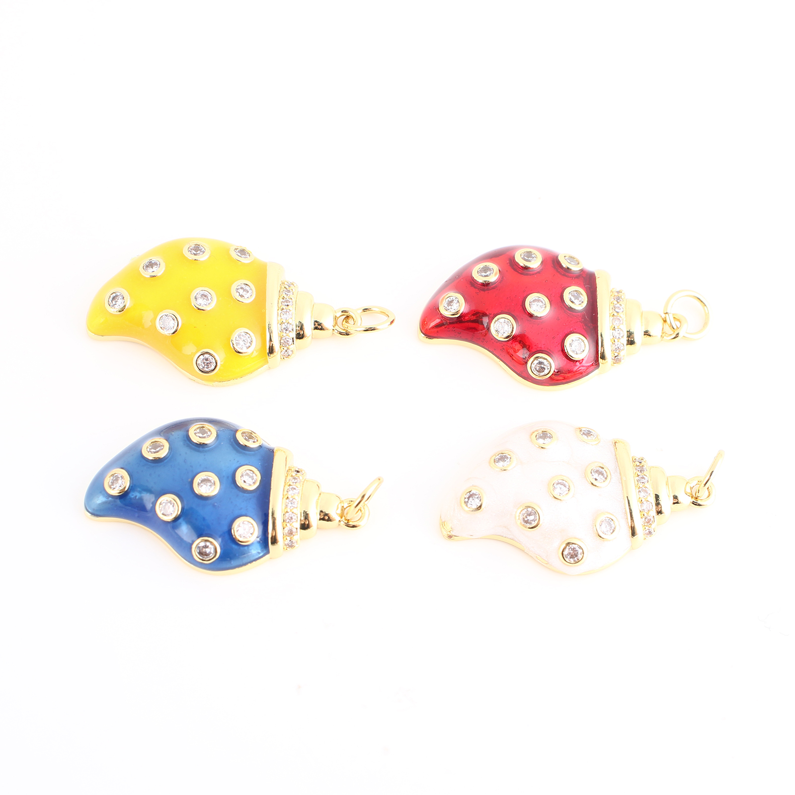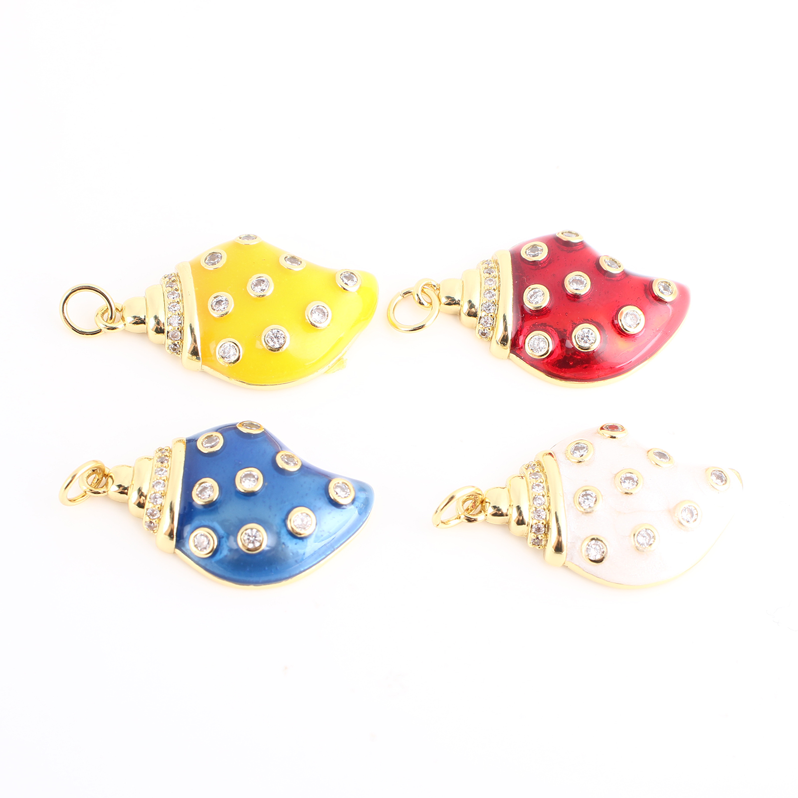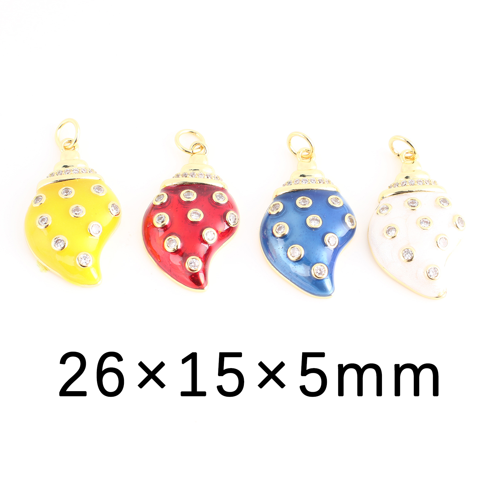 Cubique Pendentif en laiton zircon pavent, conque, Placage de couleur d'or, DIY & pavé de micro zircon & émail, plus de couleurs à choisir, 26x15x5mm, Vendu par PC