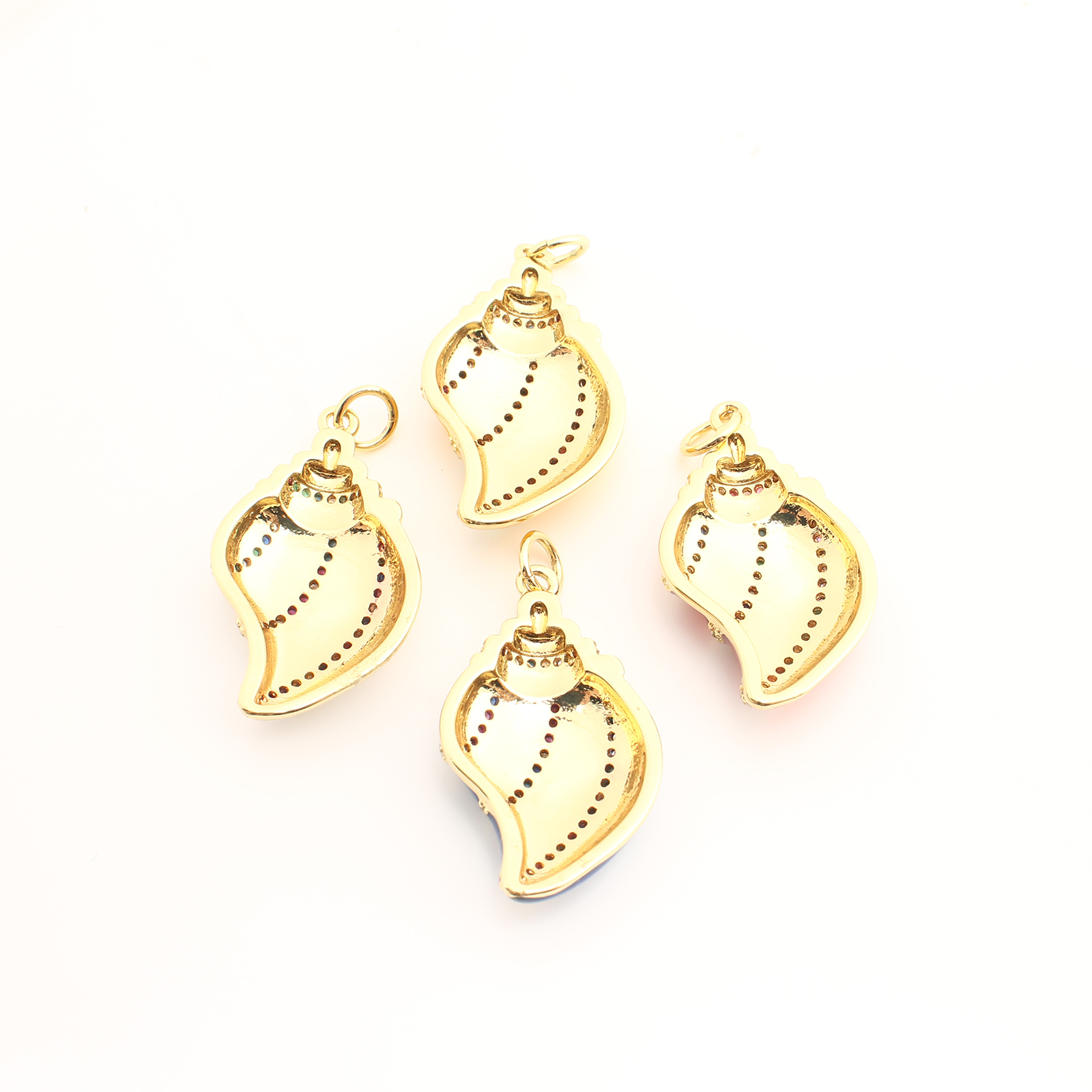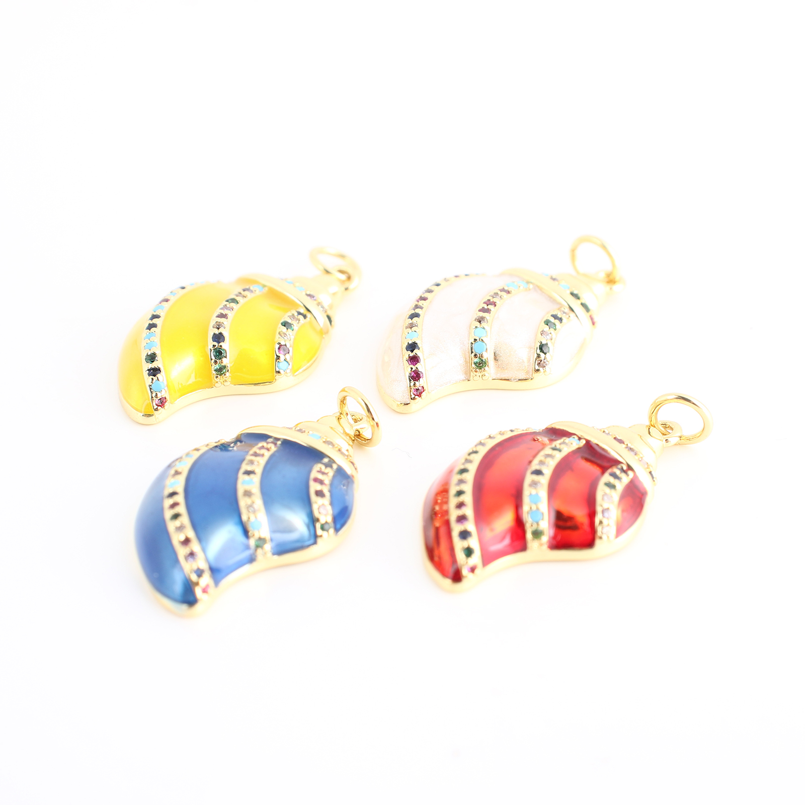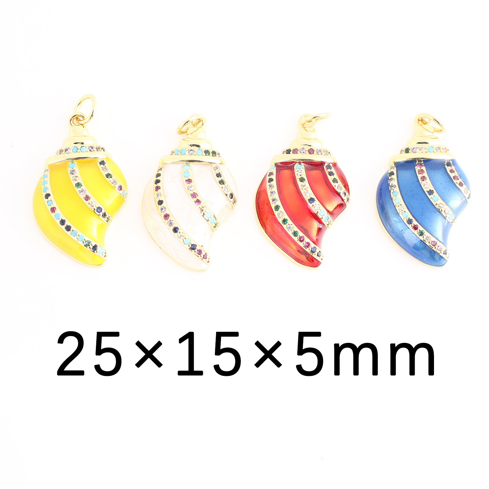 Cubique Pendentif en laiton zircon pavent, conque, Placage de couleur d'or, DIY & pavé de micro zircon & émail, plus de couleurs à choisir, 25x15x5mm, Vendu par PC
