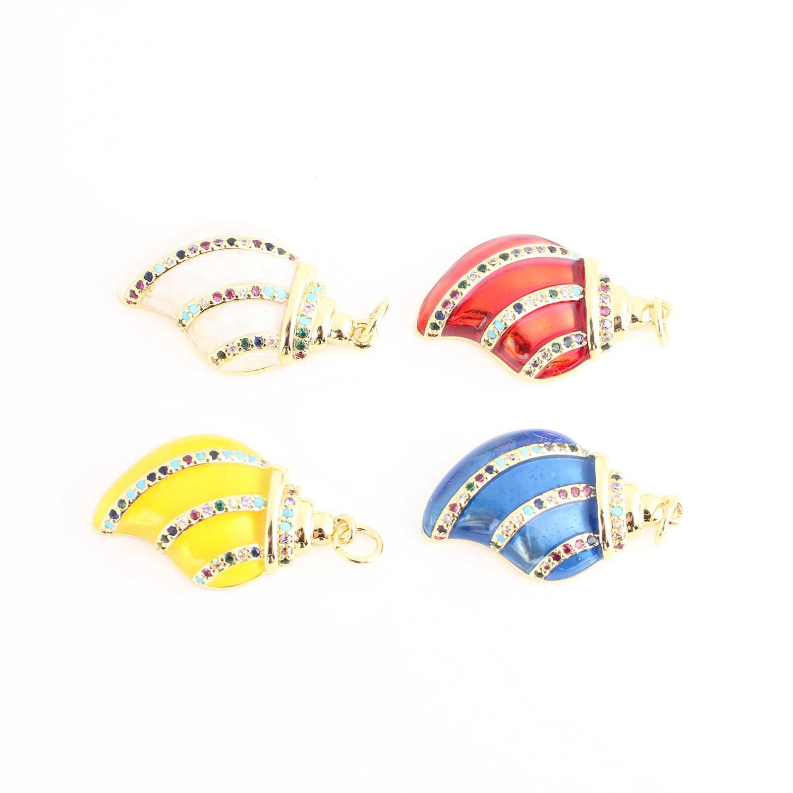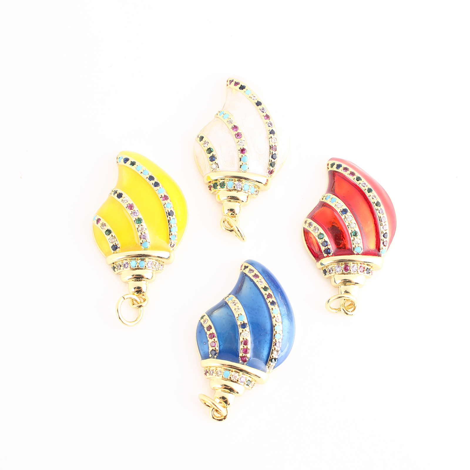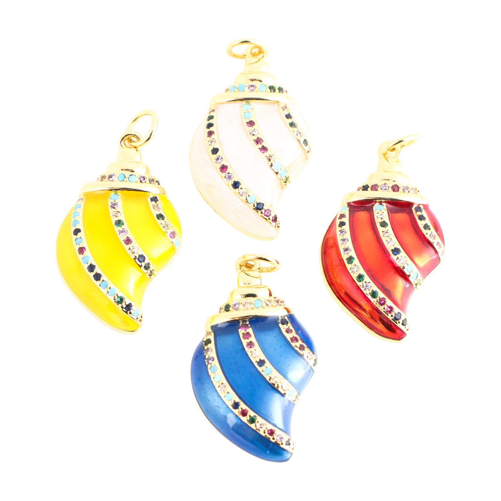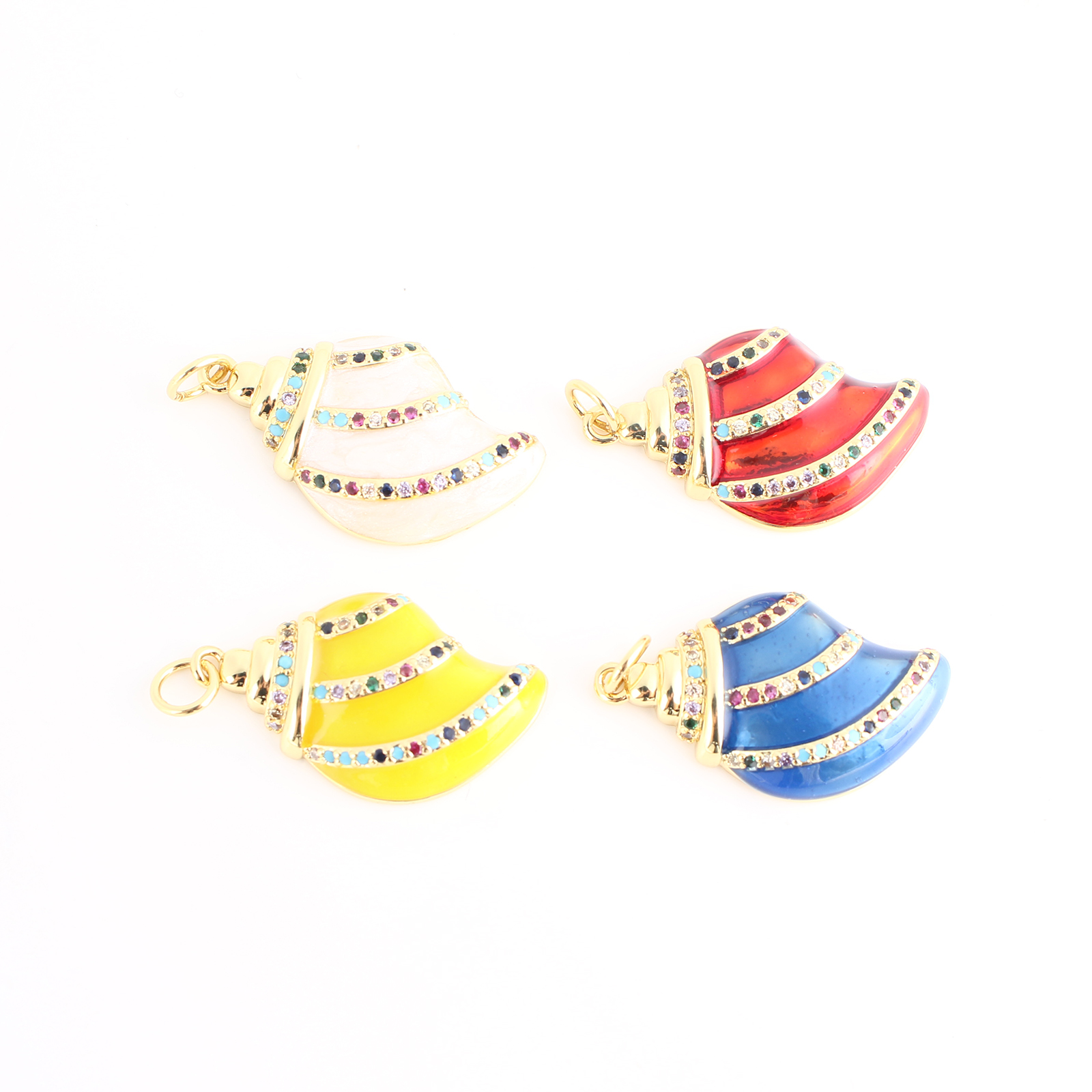 Cubique Pendentif en laiton zircon pavent, conque, Placage de couleur d'or, DIY & pavé de micro zircon & émail, plus de couleurs à choisir, 25x15x5mm, Vendu par PC