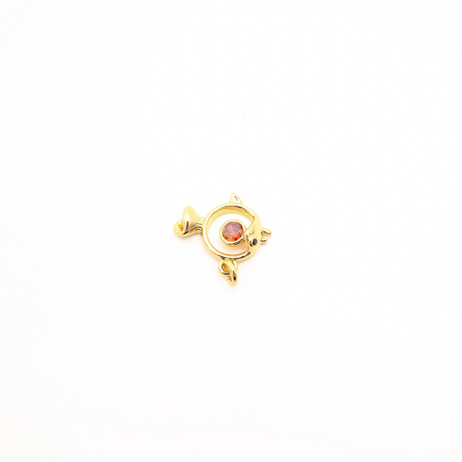 Cubique Pendentif en laiton zircon pavent, poisson, DIY & pavé de micro zircon & creux, doré, 12x14x3mm, Vendu par PC