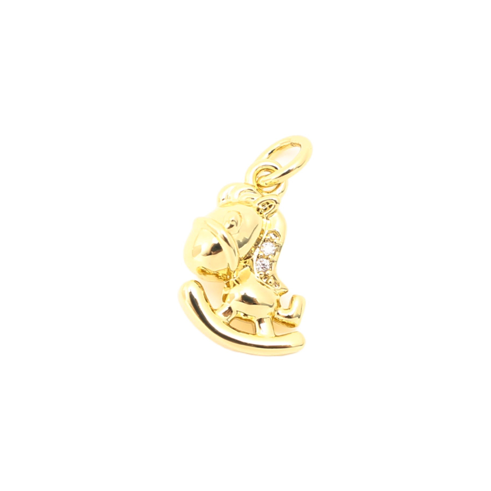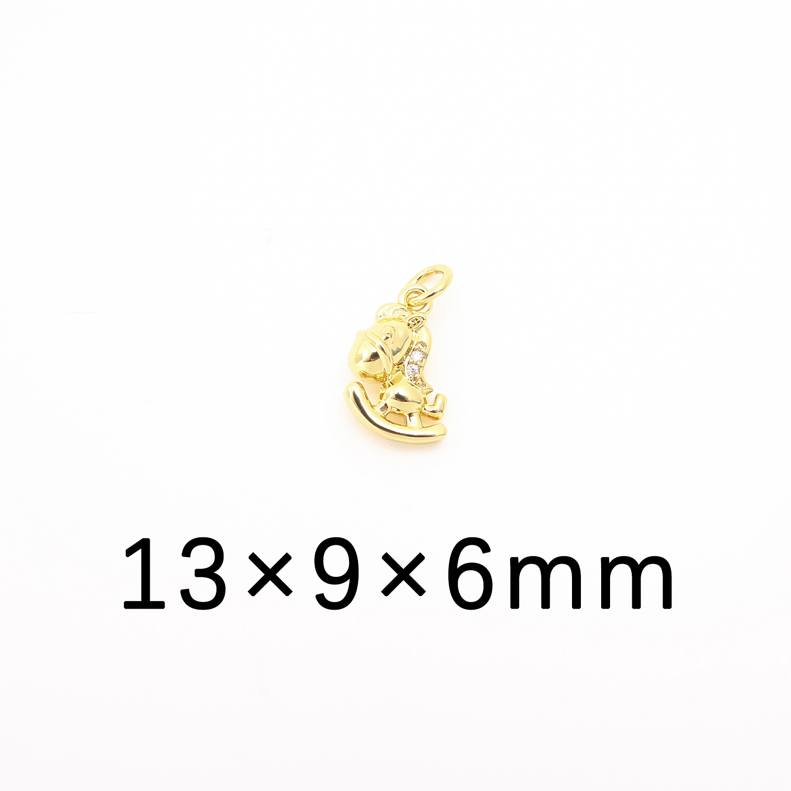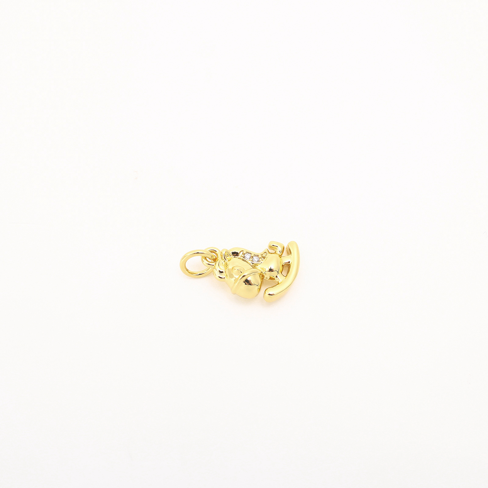 Cubique Pendentif en laiton zircon pavent, cheval à bascule, DIY & pavé de micro zircon, doré, 13x9x6mm, Vendu par PC