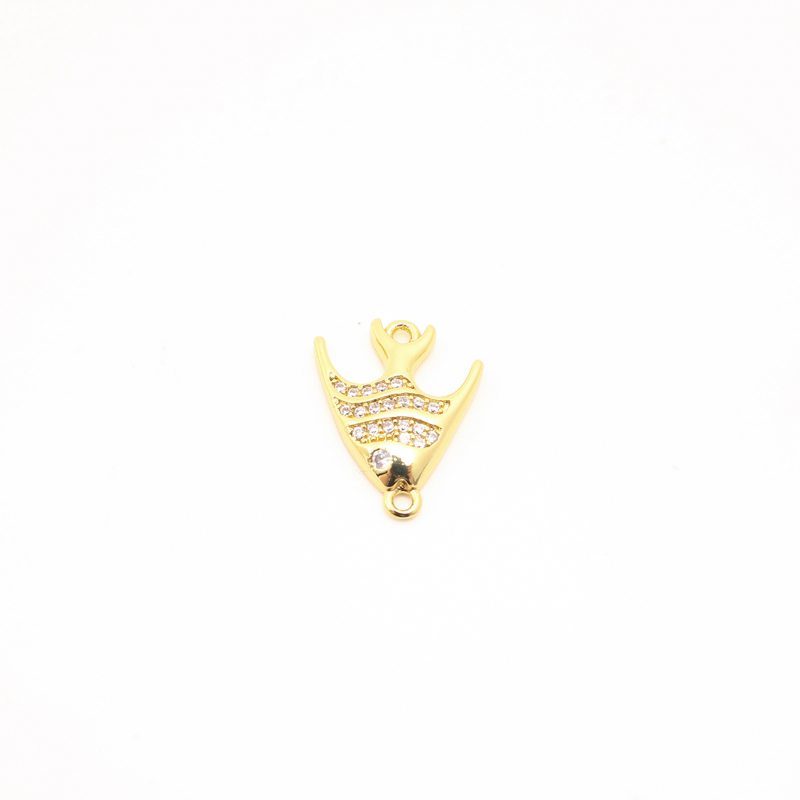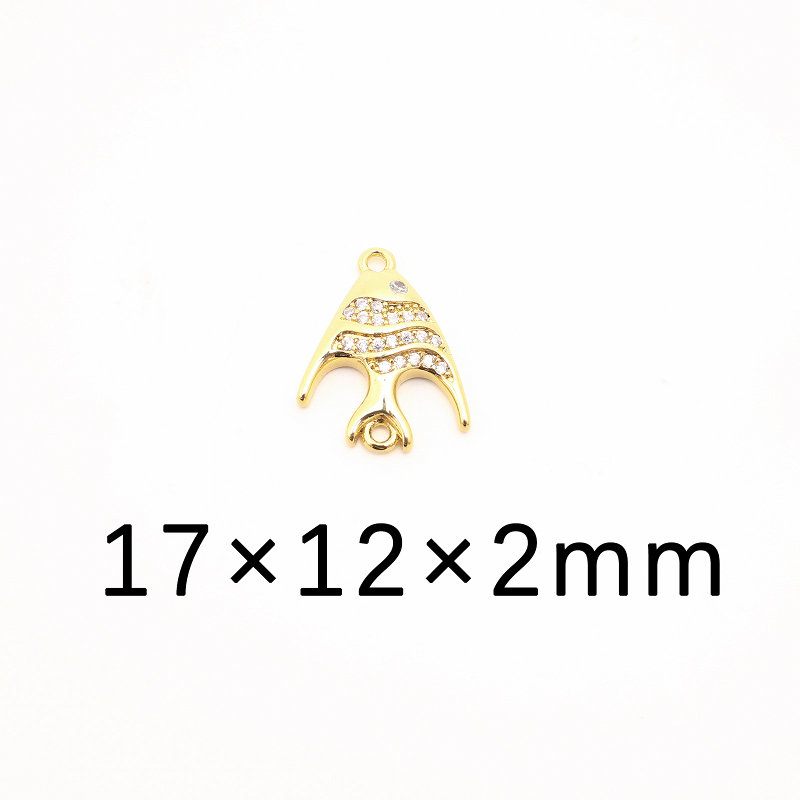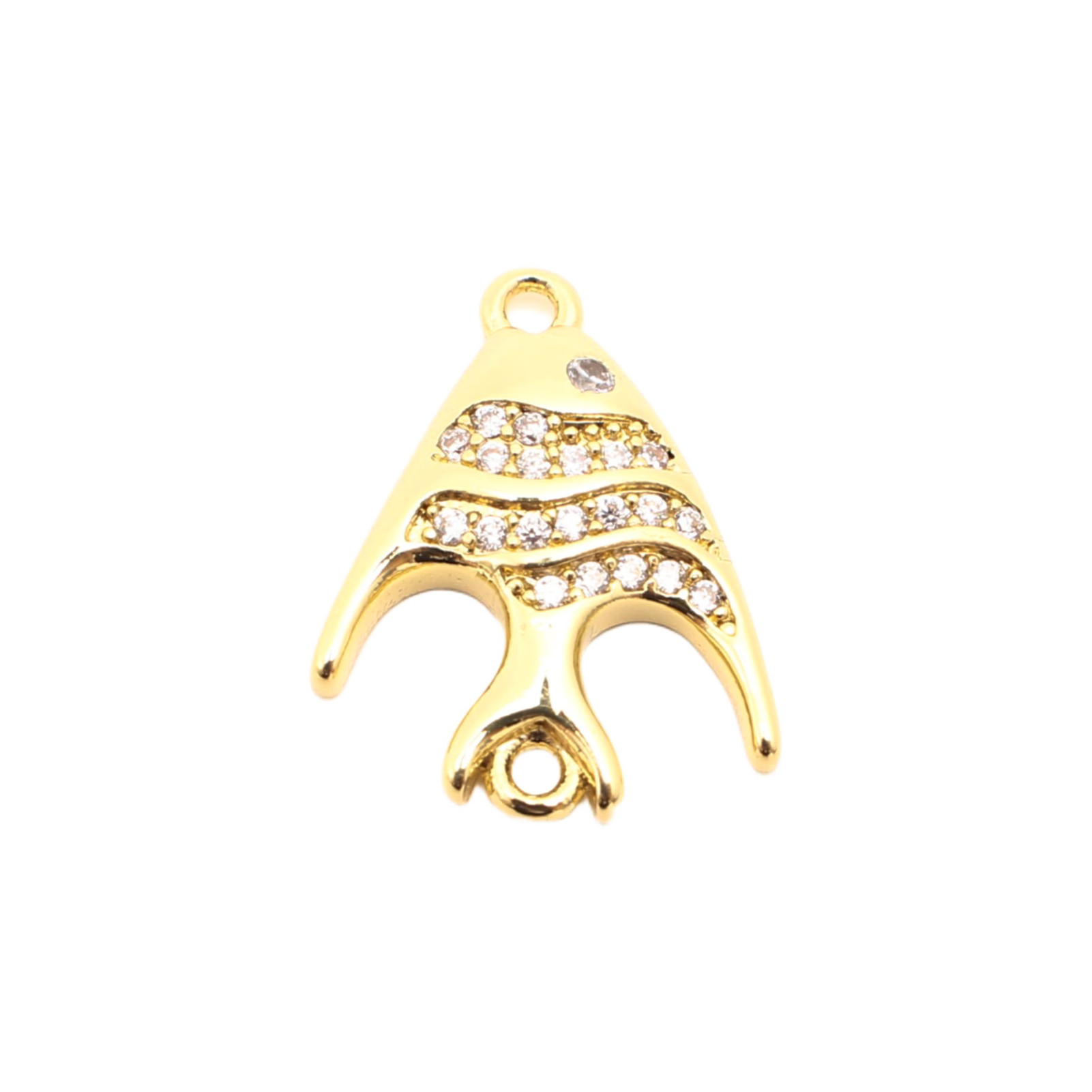 Cubique Pendentif en laiton zircon pavent, poisson, DIY & pavé de micro zircon, doré, 17x12x2mm, Vendu par PC