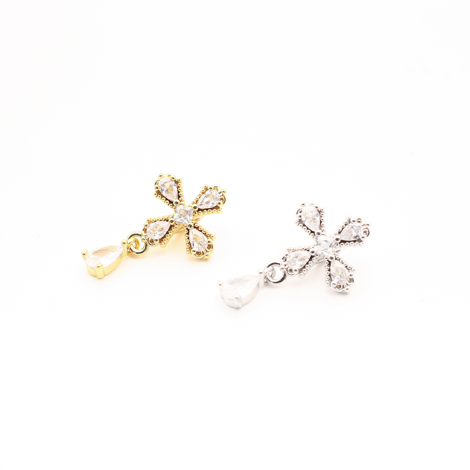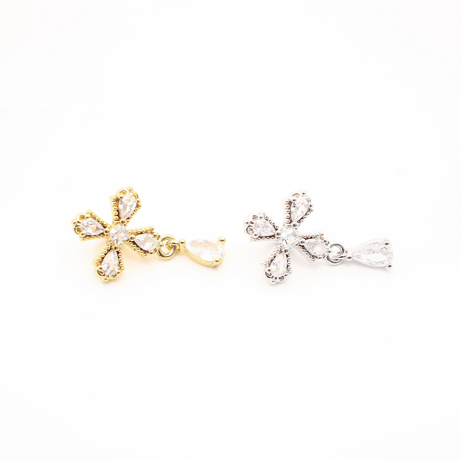 Cubique Pendentif en laiton zircon pavent, croix, Placage, DIY & pavé de micro zircon, plus de couleurs à choisir, protéger l'environnement, sans nickel, plomb et cadmium, 39x25.20x3.60mm, Vendu par PC