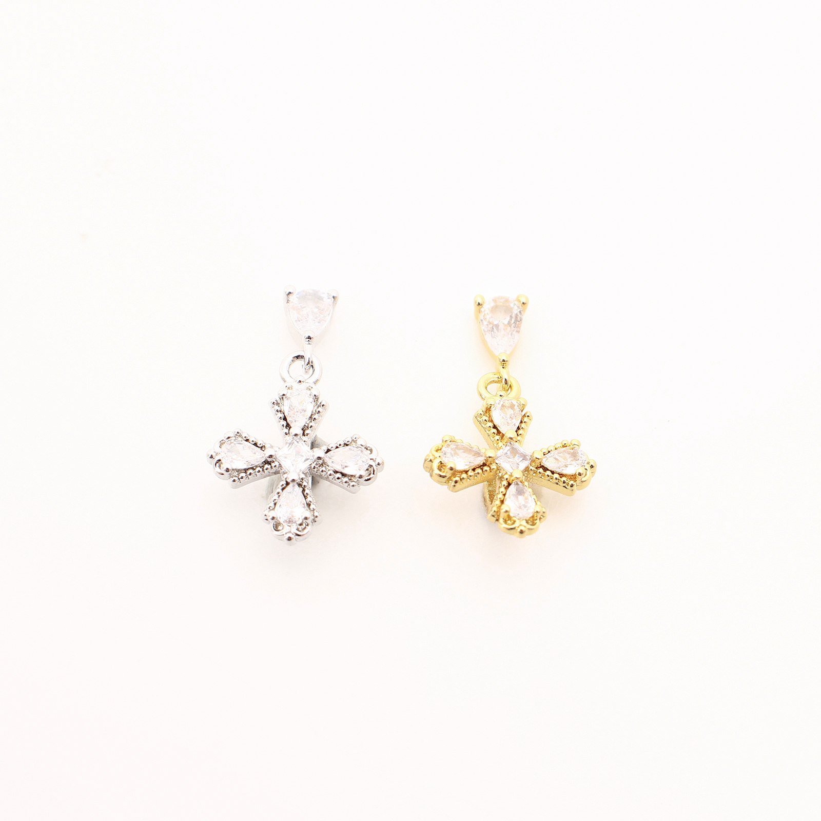 Cubique Pendentif en laiton zircon pavent, fleur, Plaqué or 18K, styles différents pour le choix & pavé de micro zircon & pour femme, Vendu par PC