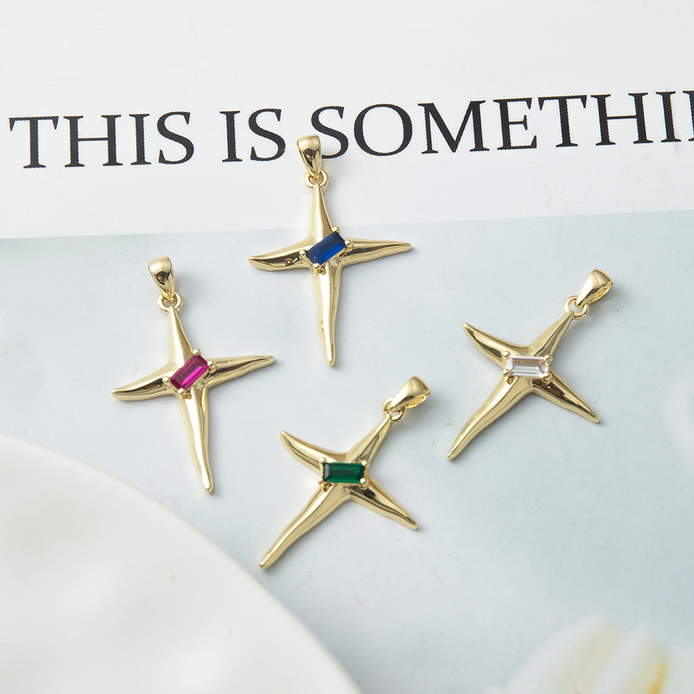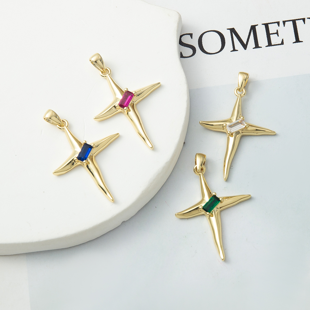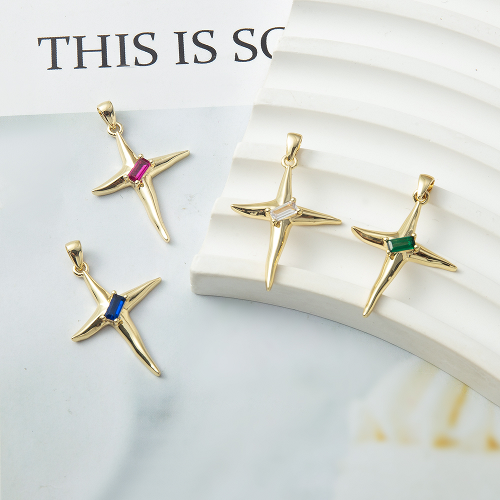 Cubique Pendentif en laiton zircon pavent, croix, Placage, DIY & pavé de micro zircon, plus de couleurs à choisir, protéger l'environnement, sans nickel, plomb et cadmium, 20.60x3.80x31.80mm, Vendu par PC
