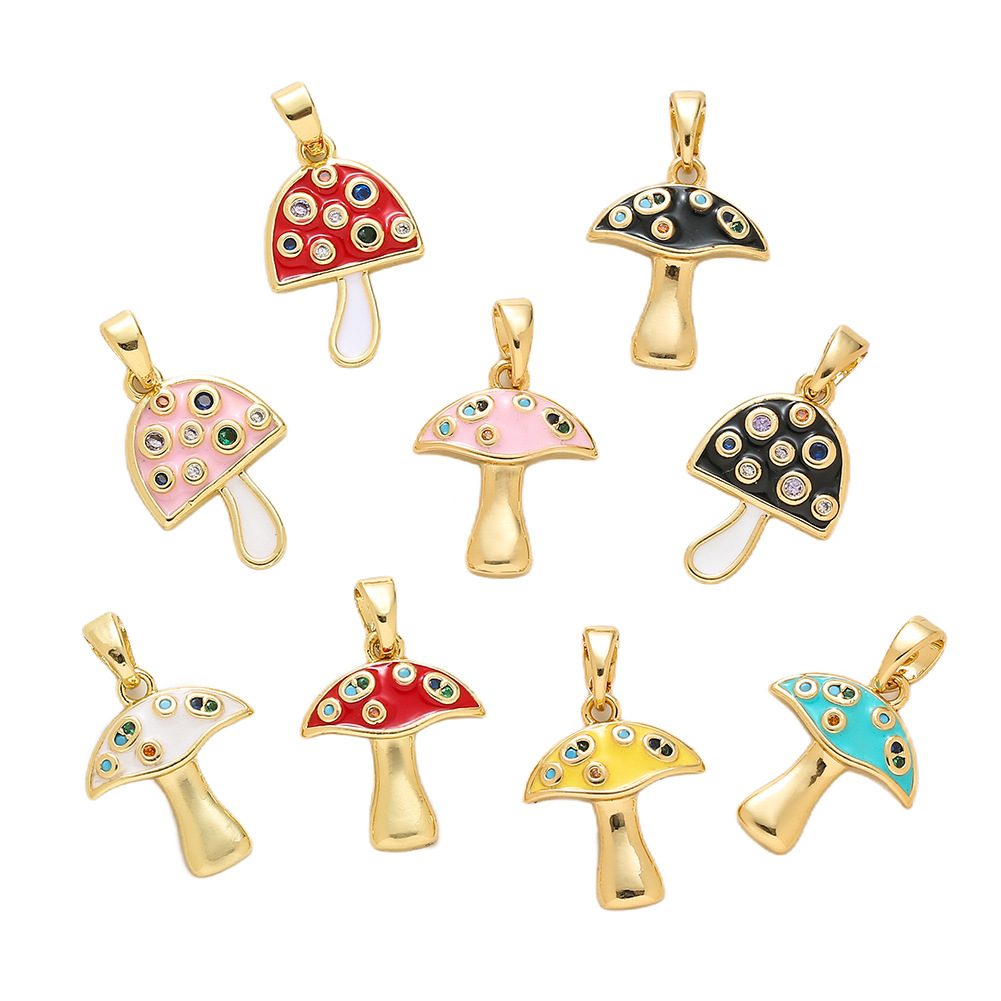 Cubique Pendentif en laiton zircon pavent, avec cristal, champignon, Placage, DIY & pavé de micro zircon & émail, plus de couleurs à choisir, protéger l'environnement, sans nickel, plomb et cadmium, Vendu par PC