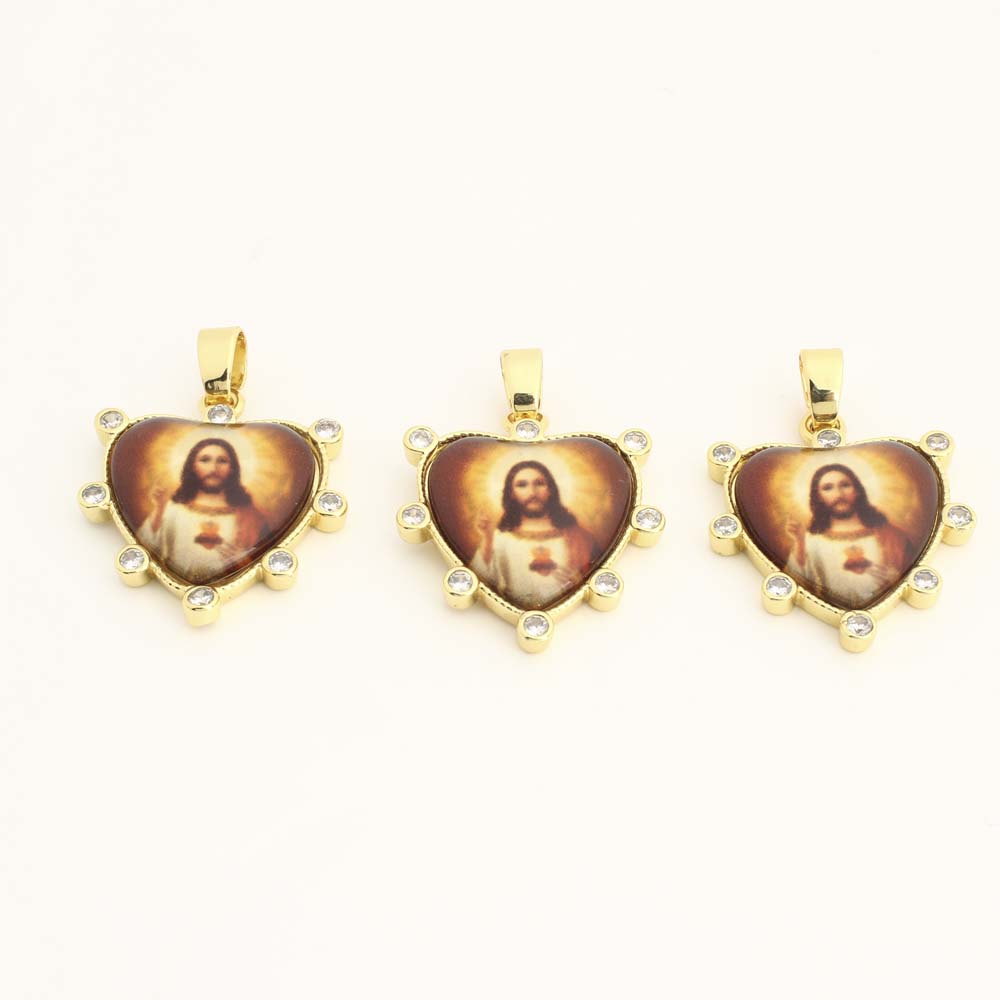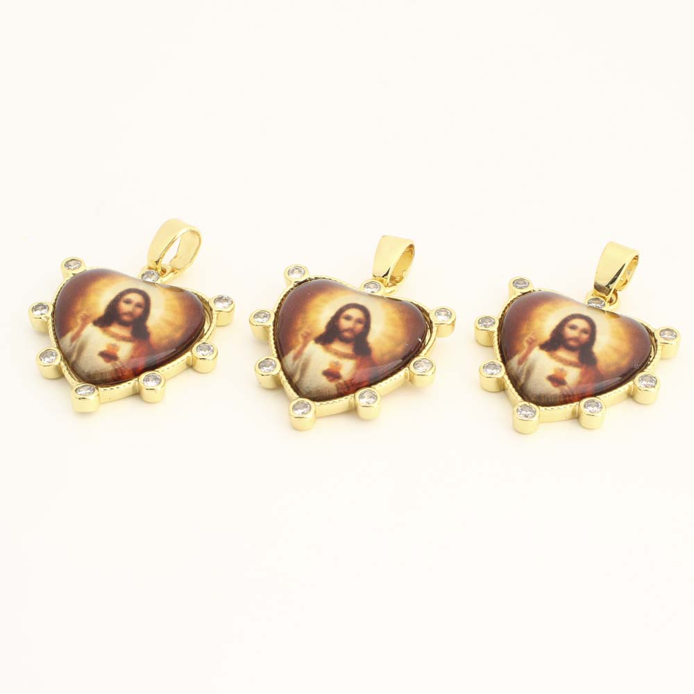 Cubique Pendentif en laiton zircon pavent, avec plastique, coeur, DIY & pavé de micro zircon, Or, Vendu par PC