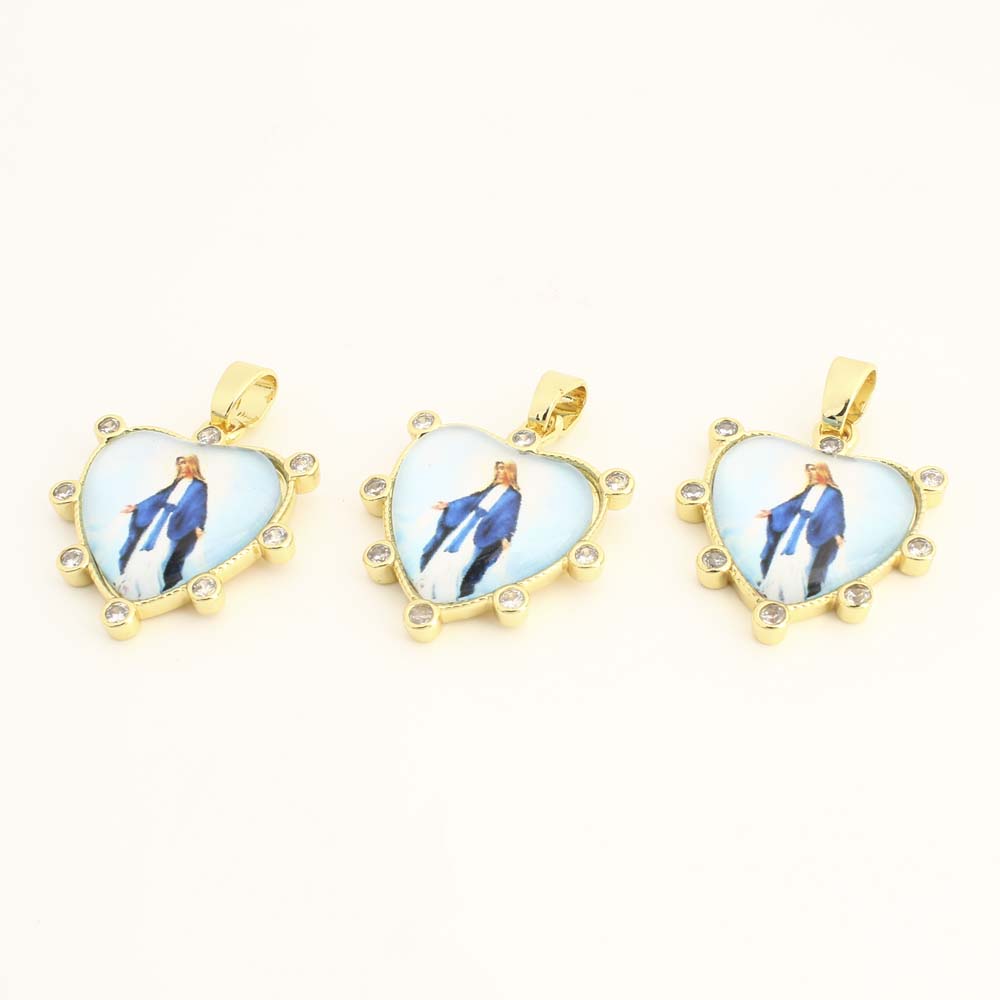 Cubique Pendentif en laiton zircon pavent, avec plastique, coeur, DIY & pavé de micro zircon, Or, Vendu par PC