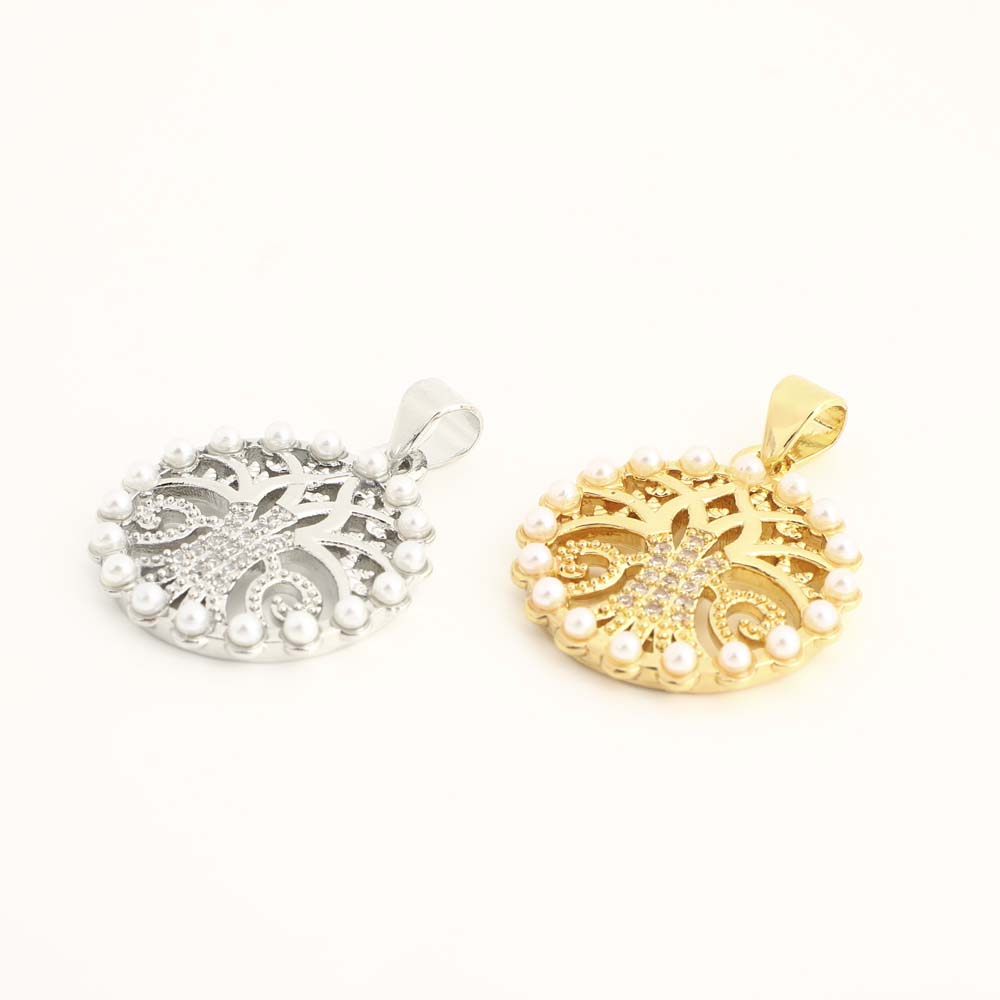 Cubique Pendentif en laiton zircon pavent, fleur, Plaqué or 18K, styles différents pour le choix & pavé de micro zircon & pour femme, Vendu par PC
