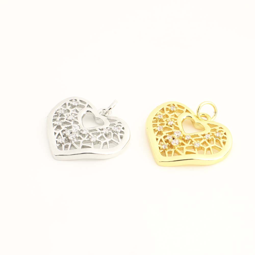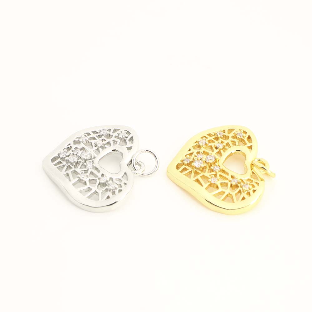 Cubique Pendentif en laiton zircon pavent, coeur, DIY & pavé de micro zircon & creux, plus de couleurs à choisir, Vendu par PC