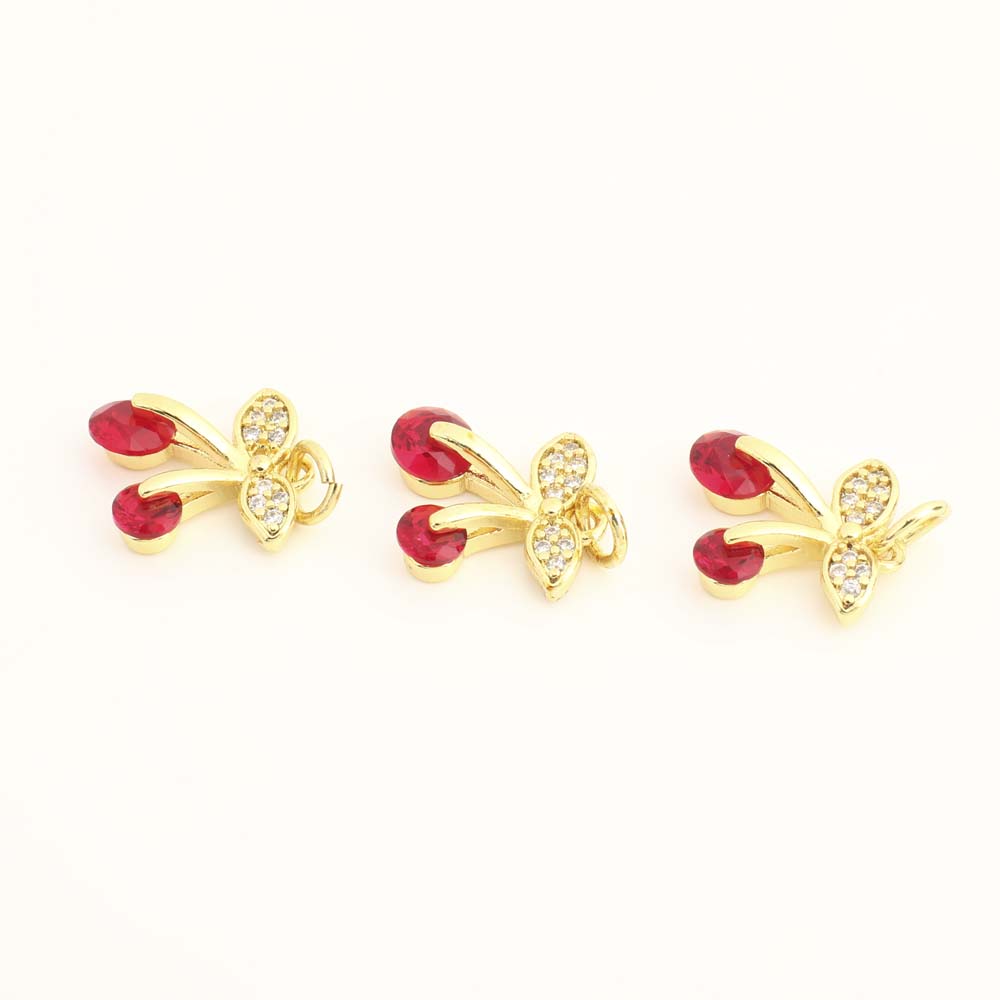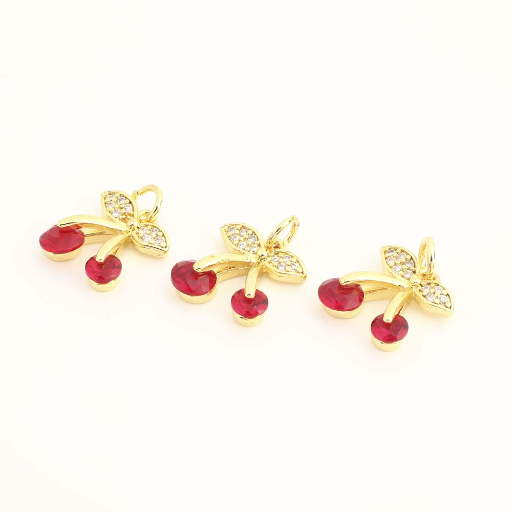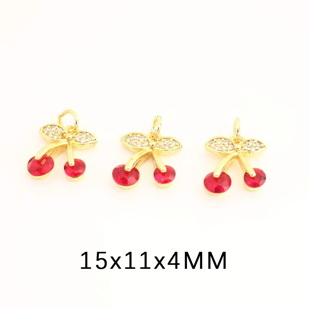 Cubique Pendentif en laiton zircon pavent, cerise, Placage, DIY & pavé de micro zircon, plus de couleurs à choisir, protéger l'environnement, sans nickel, plomb et cadmium, 10PC/sac, Vendu par sac