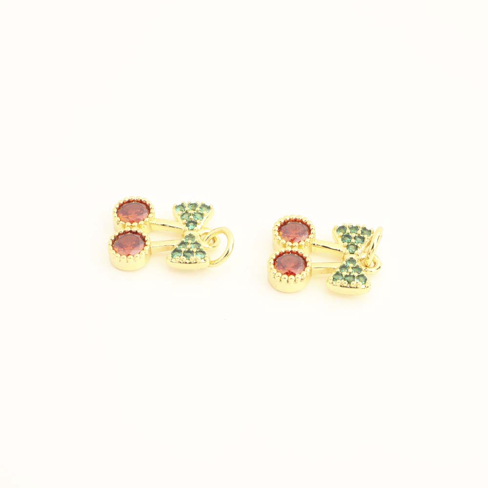 Cubique Pendentif en laiton zircon pavent, cerise, Placage, DIY & pavé de micro zircon, doré, protéger l'environnement, sans nickel, plomb et cadmium, 13.47x3.86x19.18mm, 20PC/sac, Vendu par sac