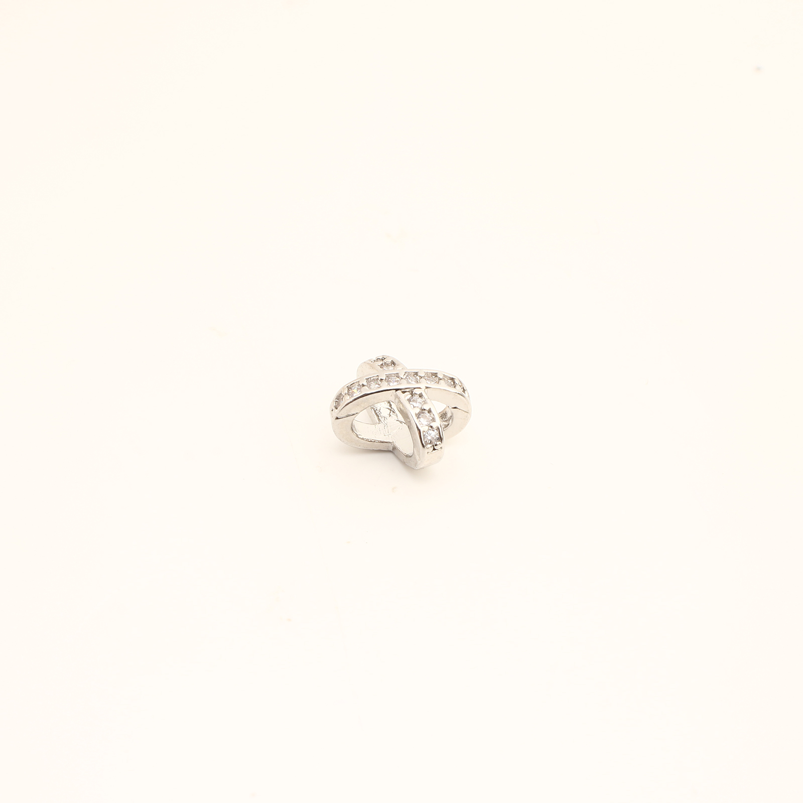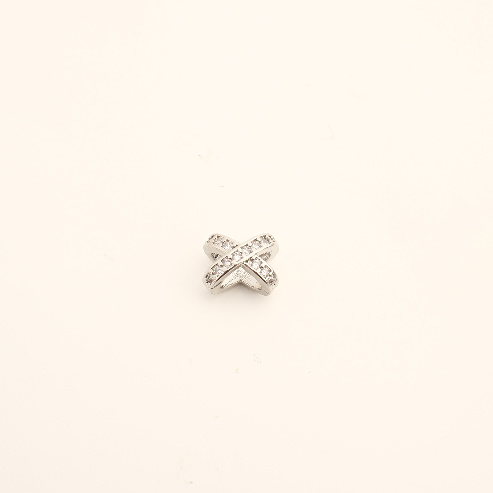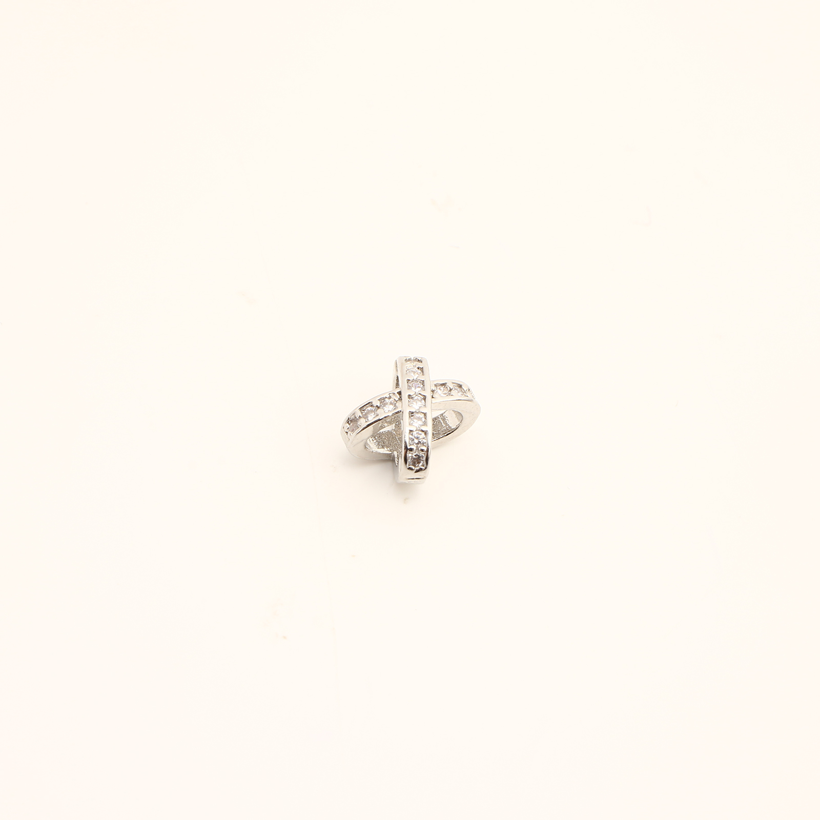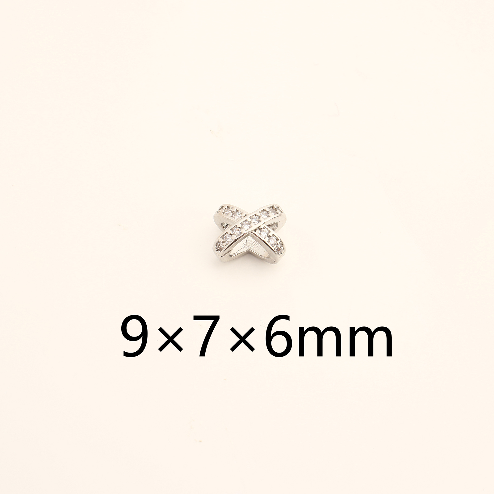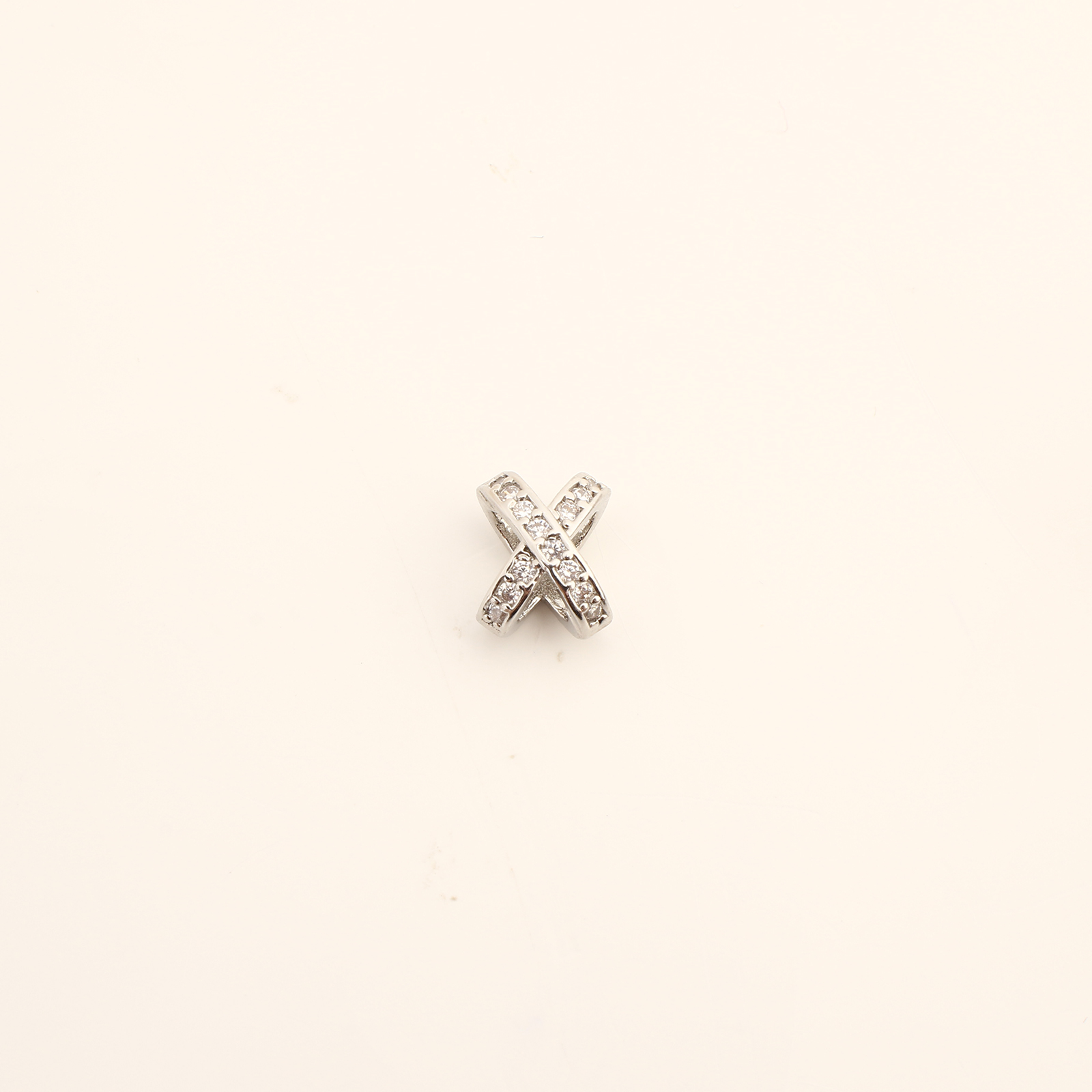 Cubique Pendentif en laiton zircon pavent, Lettre X, DIY & pavé de micro zircon, argent, 9x7x6mm, Vendu par PC