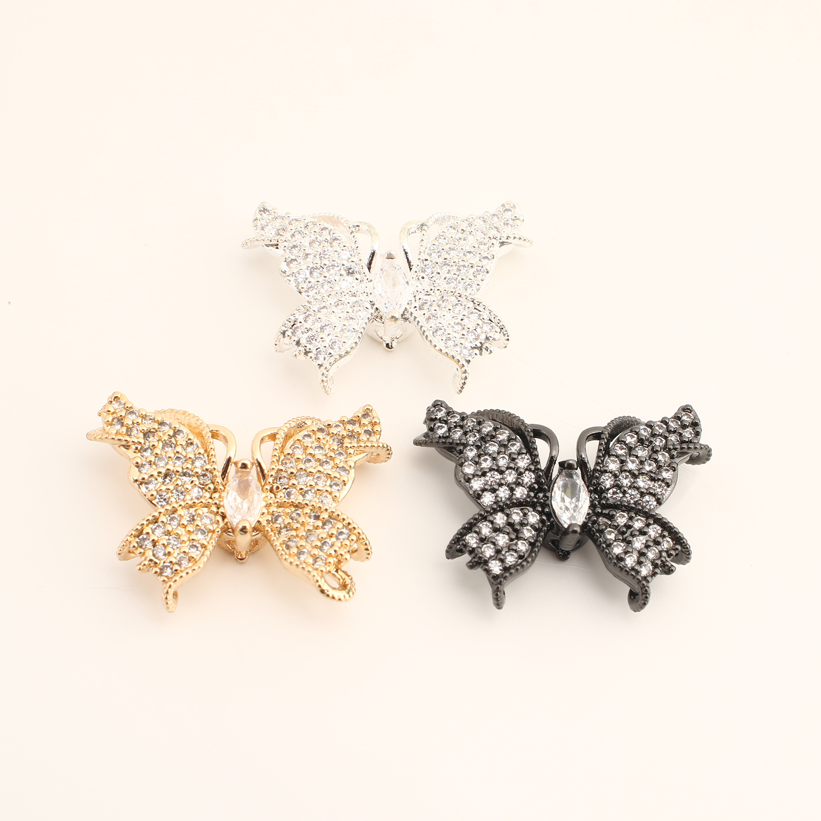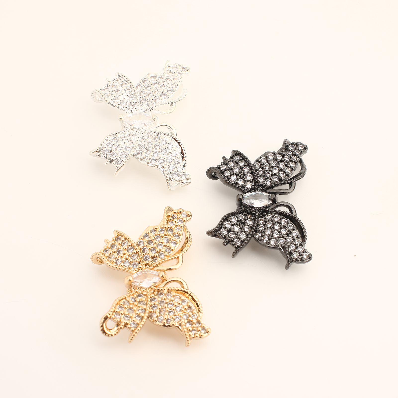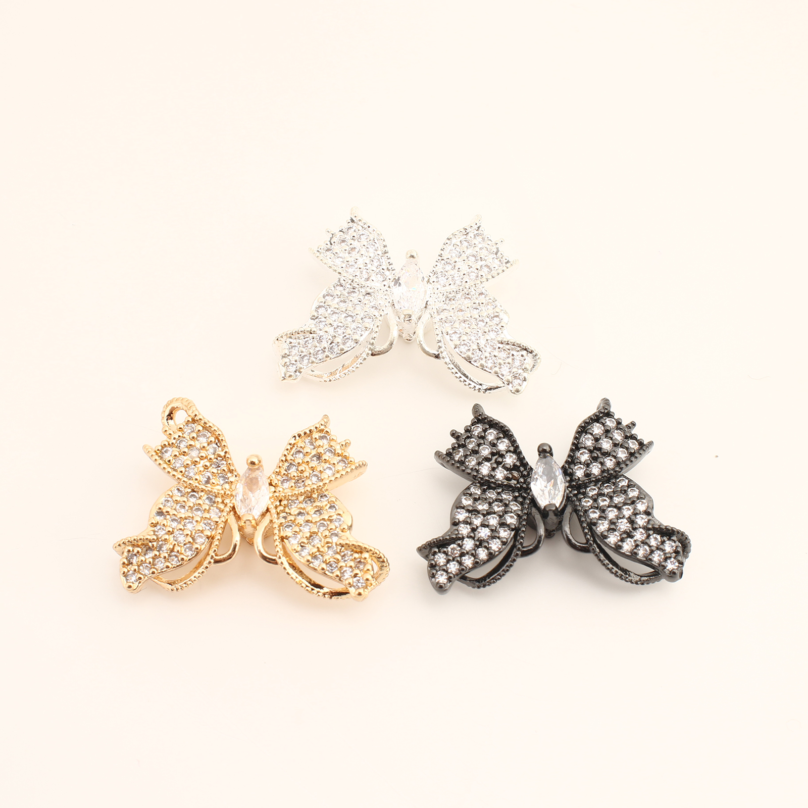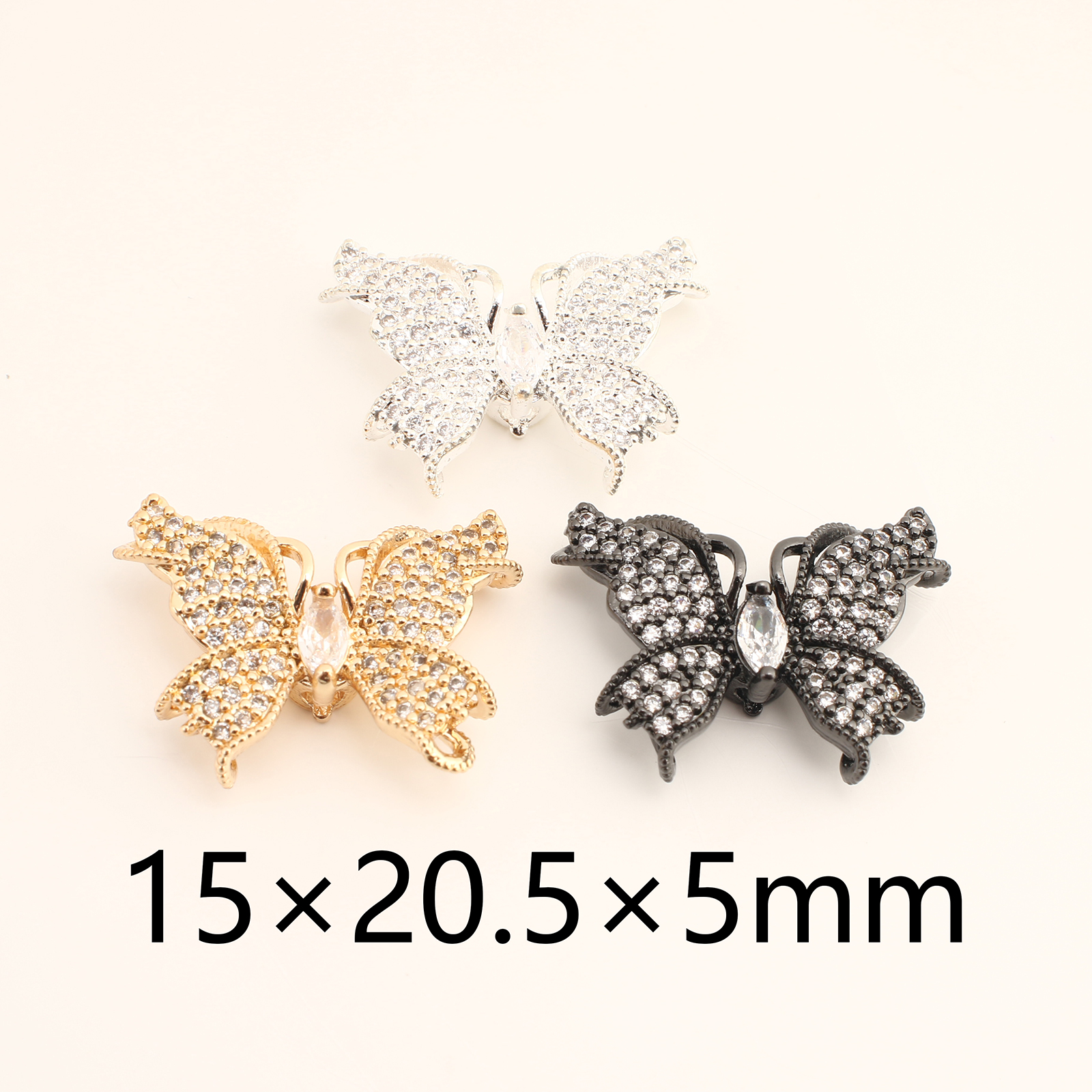 Cubique Pendentif en laiton zircon pavent, papillon, DIY & pavé de micro zircon, plus de couleurs à choisir, 15x20.50x5mm, Vendu par PC