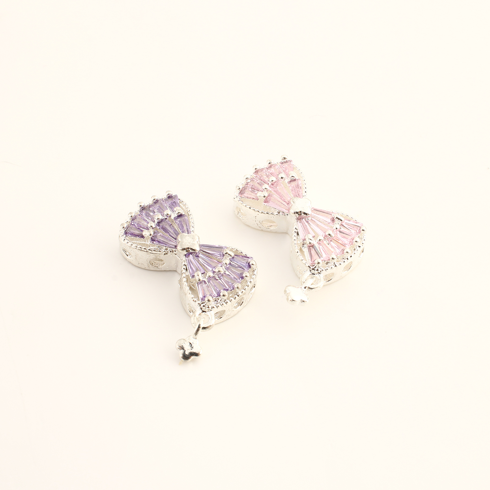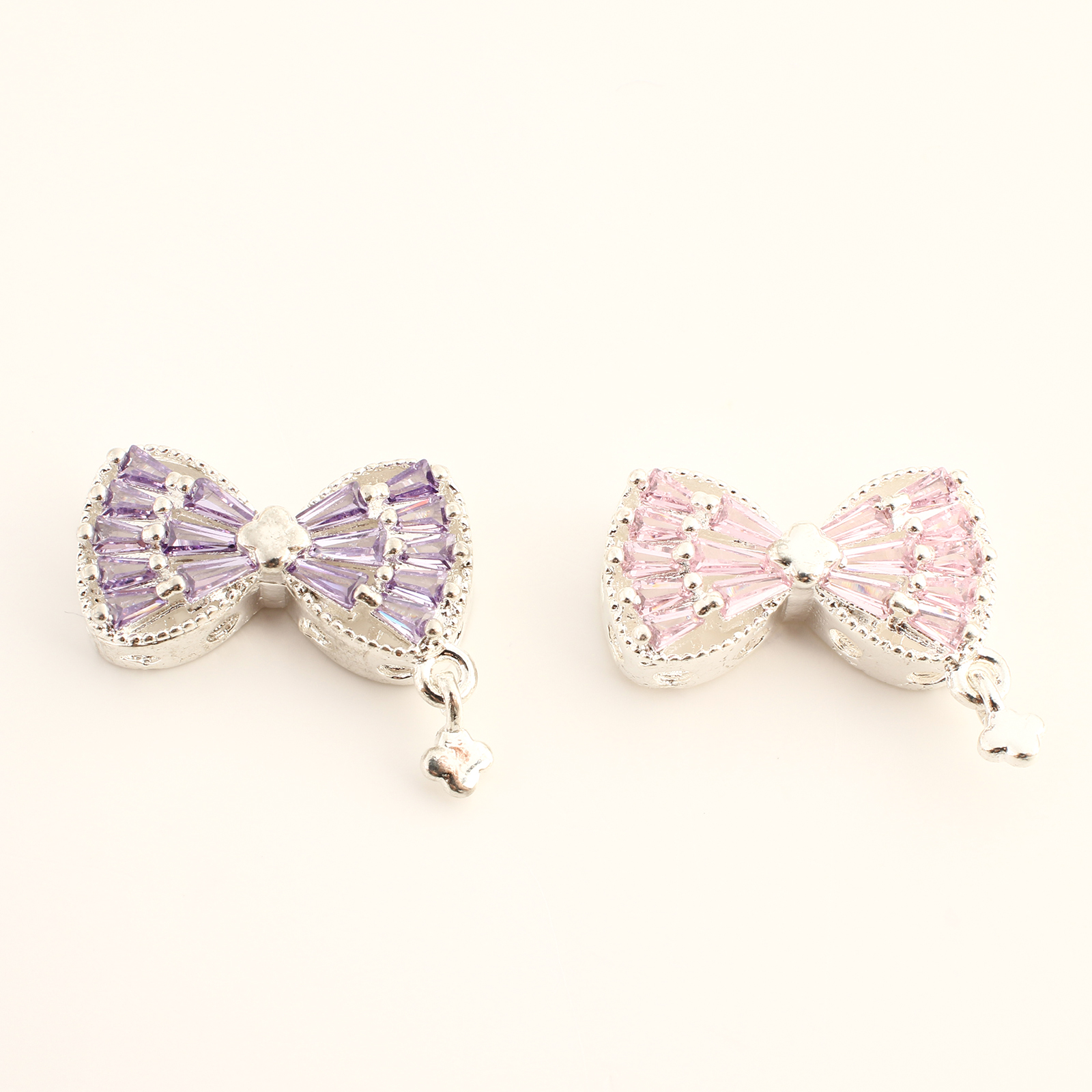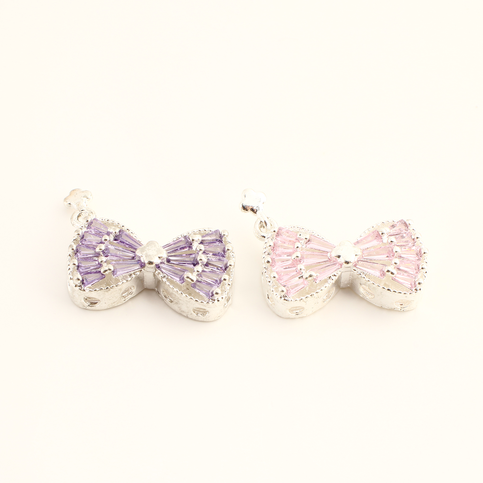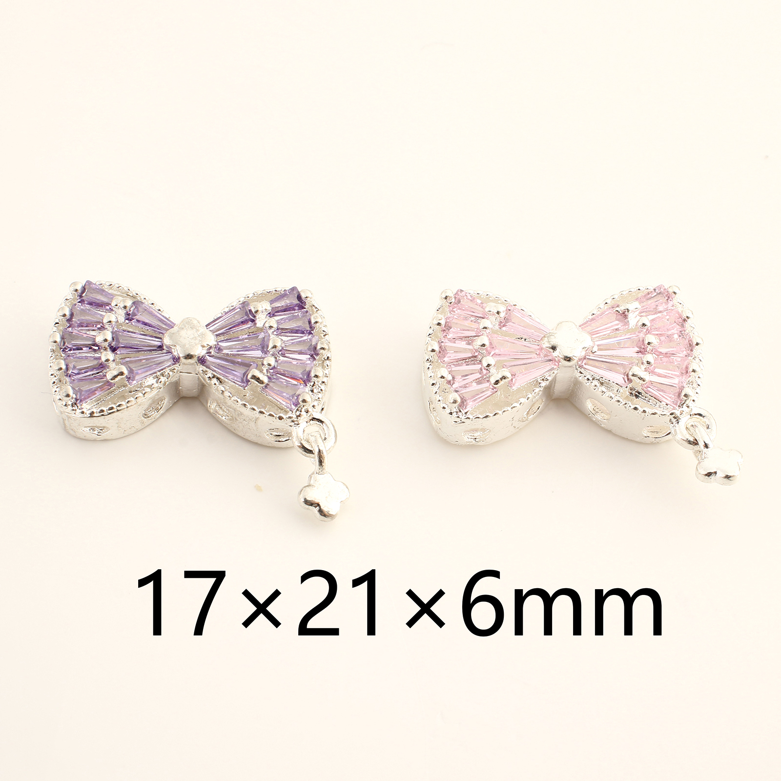 Cubique Pendentif en laiton zircon pavent, Noeud papillon, Placage de couleur argentée, DIY & pavé de micro zircon, plus de couleurs à choisir, 17x21x6mm, Vendu par PC