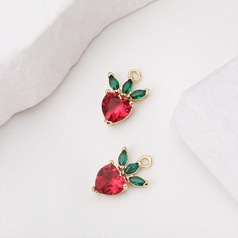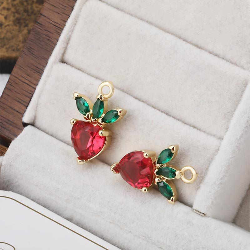 Cubique Pendentif en laiton zircon pavent, cerise, Placage, DIY & pavé de micro zircon, plus de couleurs à choisir, protéger l'environnement, sans nickel, plomb et cadmium, 10PC/sac, Vendu par sac