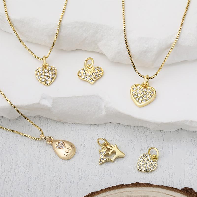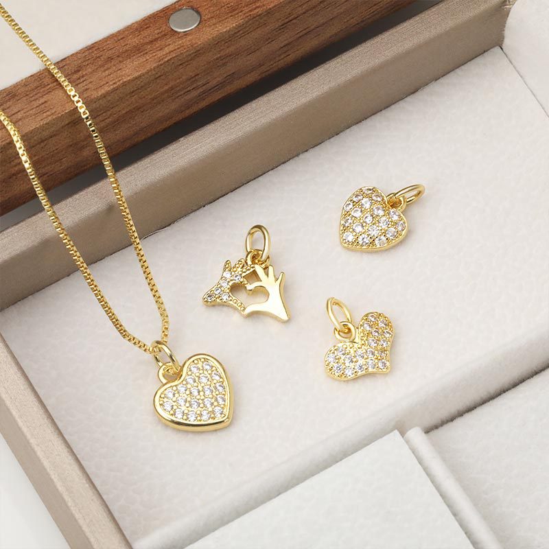 Cubique Pendentif en laiton zircon pavent, coeur, Placage de couleur d'or, DIY & pavé de micro zircon & émail, plus de couleurs à choisir, 9x9x2mm, Vendu par PC
