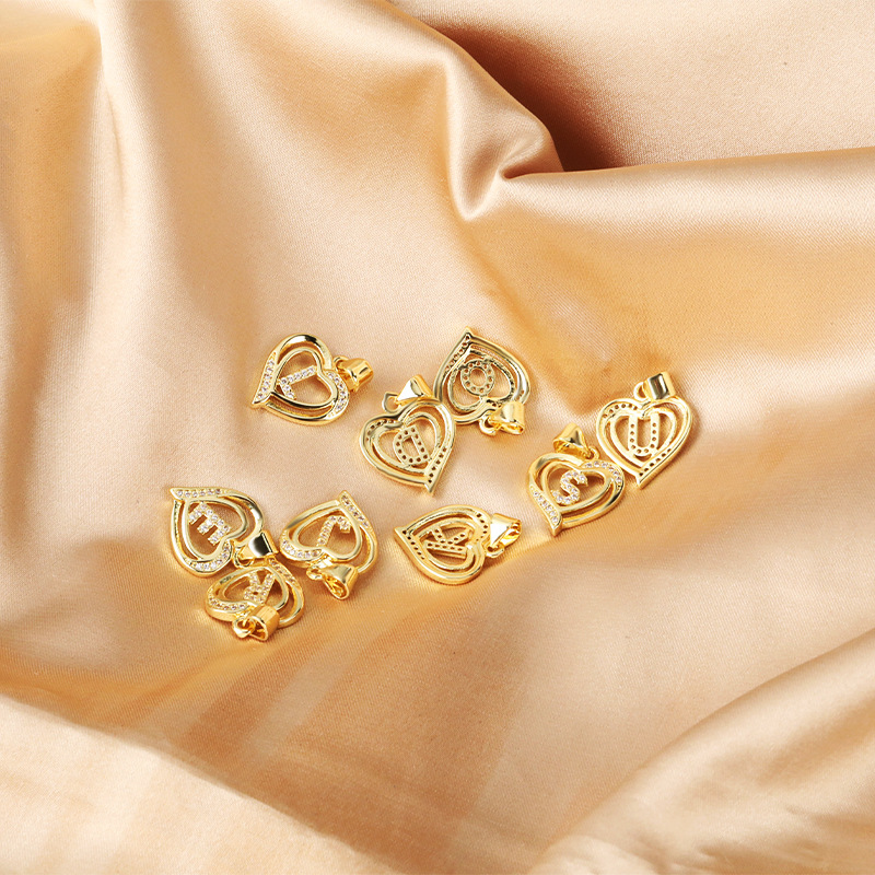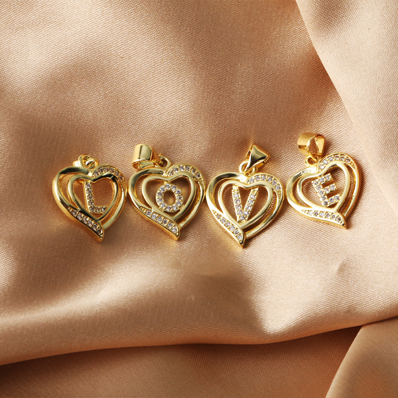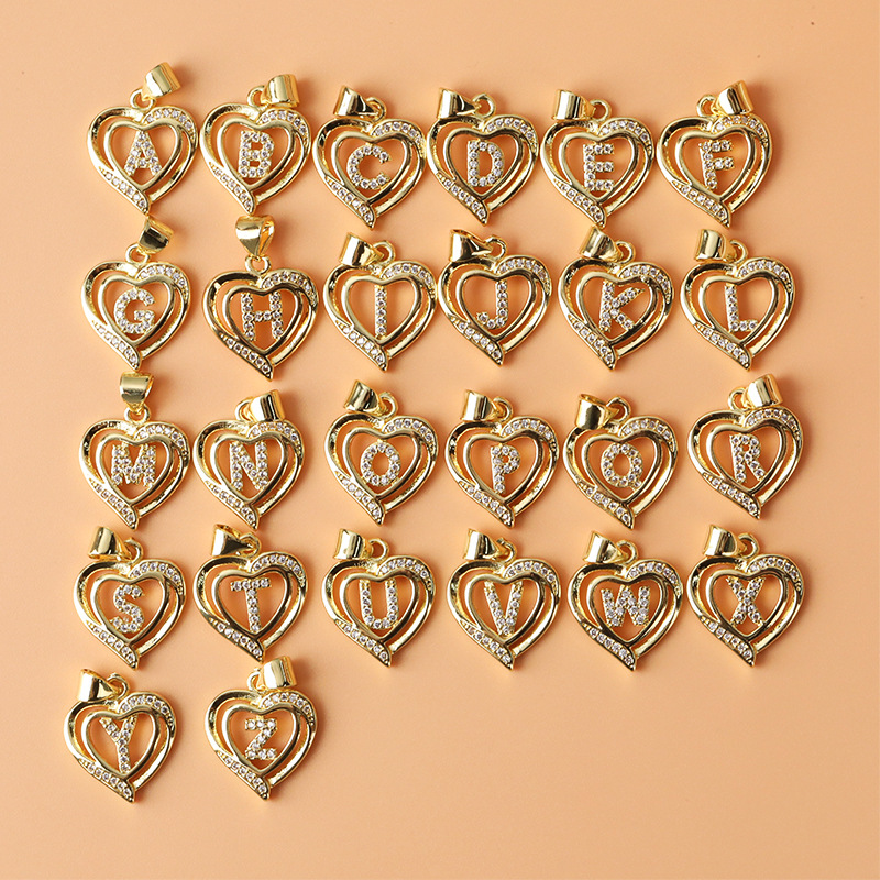 Cubique Pendentif en laiton zircon pavent, Lettre d’alphabet, Placage, DIY & pavé de micro zircon, doré, protéger l'environnement, sans nickel, plomb et cadmium, Vendu par PC