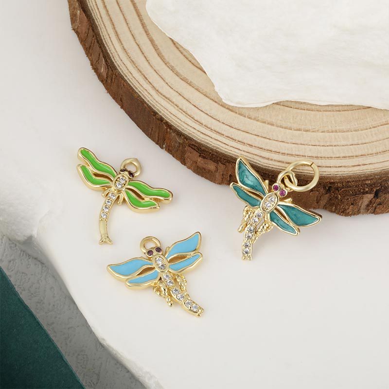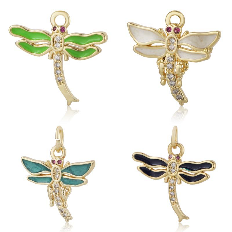 Cubique Pendentif en laiton zircon pavent, libellule, Placage, DIY & pavé de micro zircon & émail, plus de couleurs à choisir, protéger l'environnement, sans nickel, plomb et cadmium, Vendu par PC