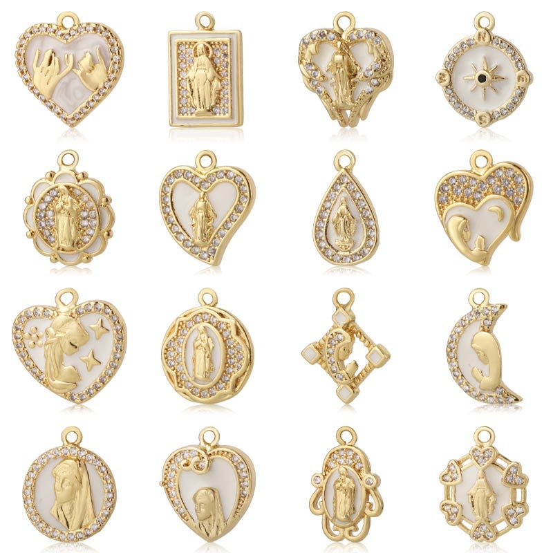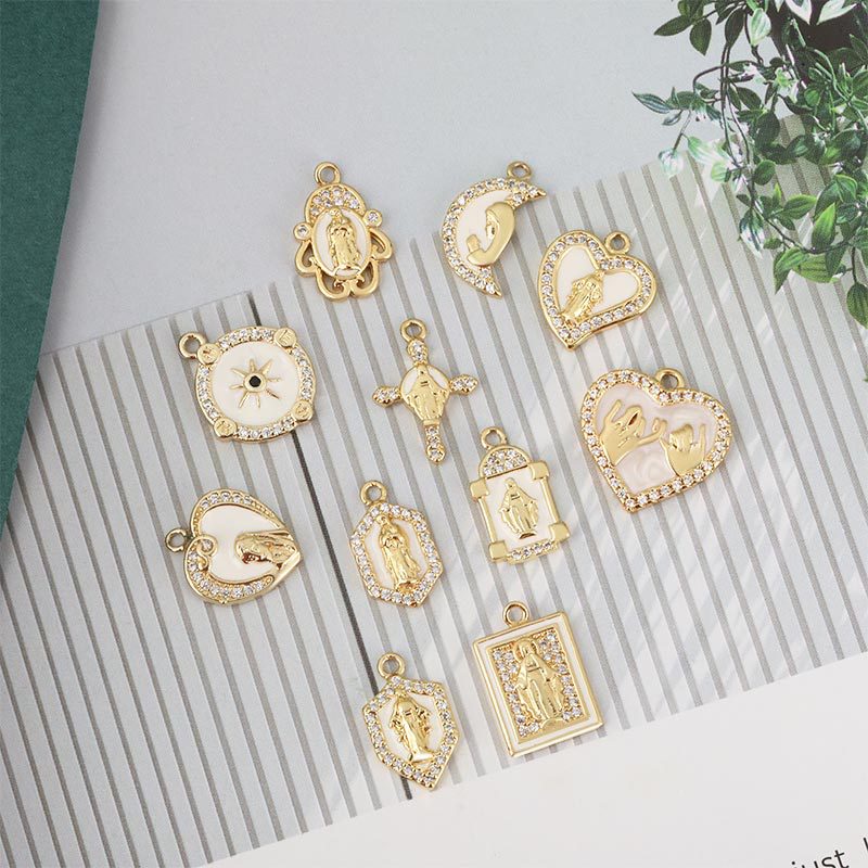 Cubique Pendentif en laiton zircon pavent, coeur, Placage de couleur d'or, DIY & pavé de micro zircon & émail, plus de couleurs à choisir, 9x9x2mm, Vendu par PC