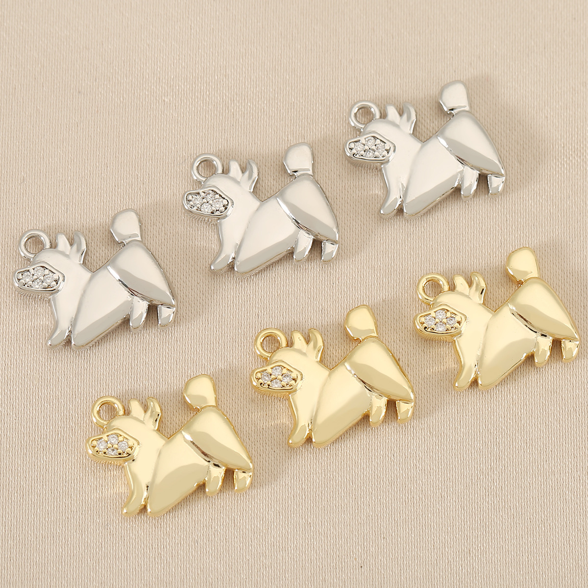 Cubique Pendentif en laiton zircon pavent, chien, Placage, DIY & pavé de micro zircon, plus de couleurs à choisir, protéger l'environnement, sans nickel, plomb et cadmium, 10PC/sac, Vendu par sac