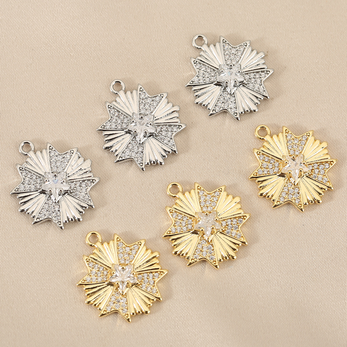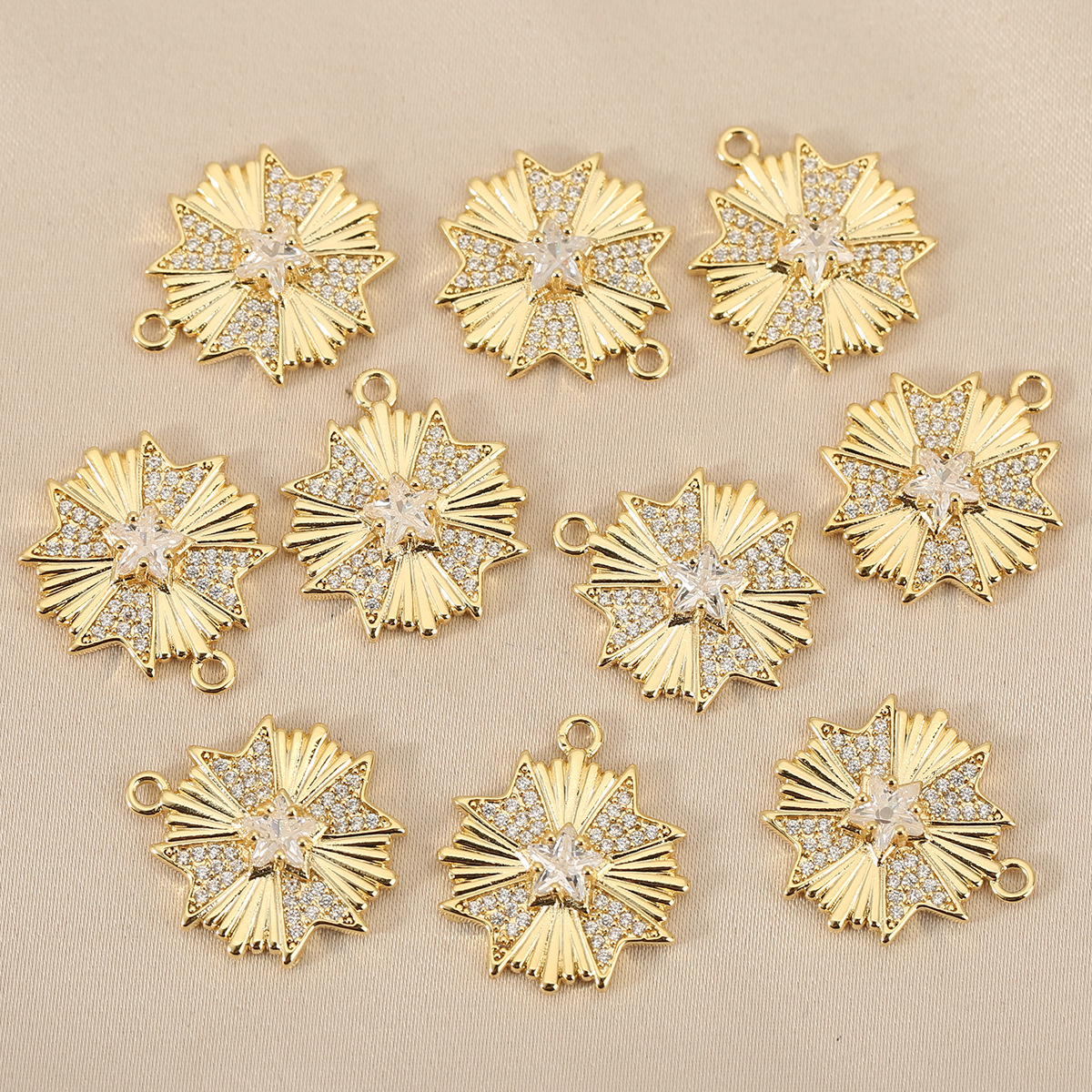 Cubique Pendentif en laiton zircon pavent, fleur, Plaqué or 18K, styles différents pour le choix & pavé de micro zircon & pour femme, Vendu par PC
