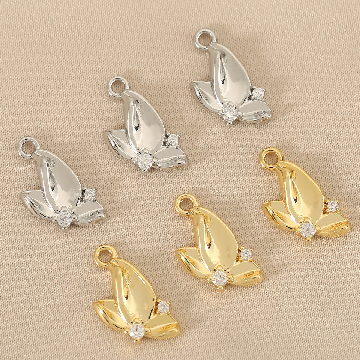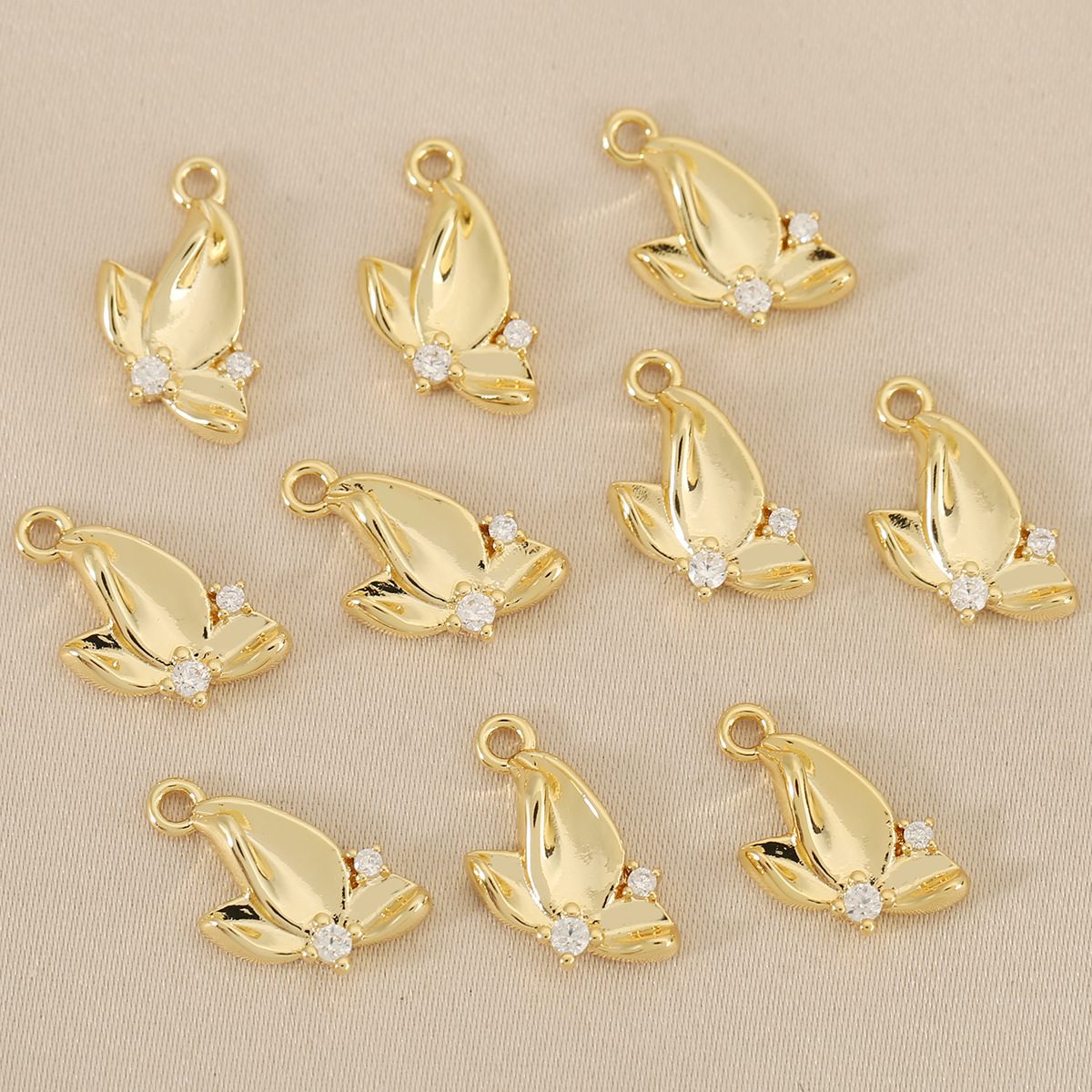 Cubique Pendentif en laiton zircon pavent, feuille, Placage, DIY & pavé de micro zircon, plus de couleurs à choisir, protéger l'environnement, sans nickel, plomb et cadmium, 10PC/sac, Vendu par sac